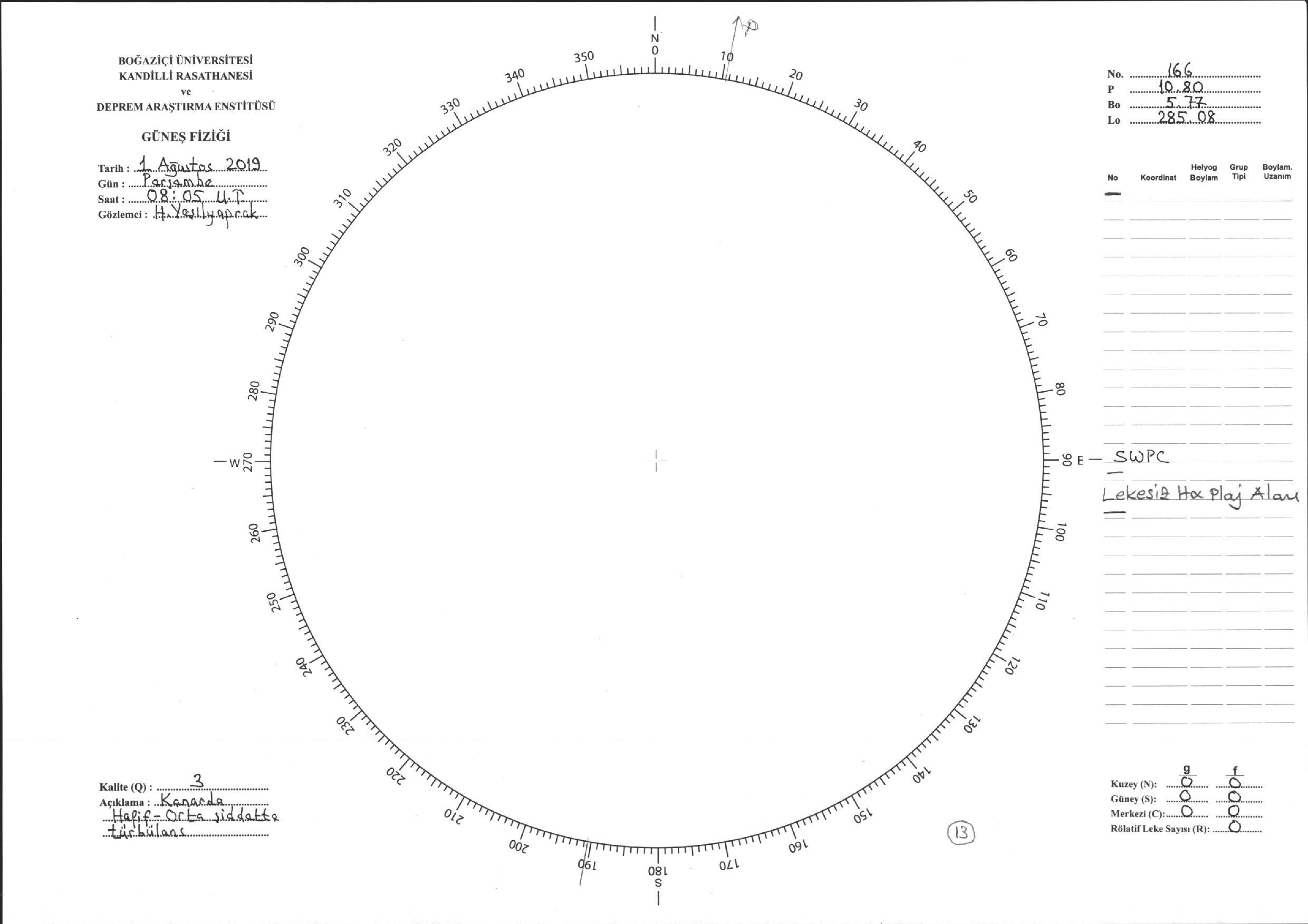 Güneş Lekesi Çizimi - 01.08.2019