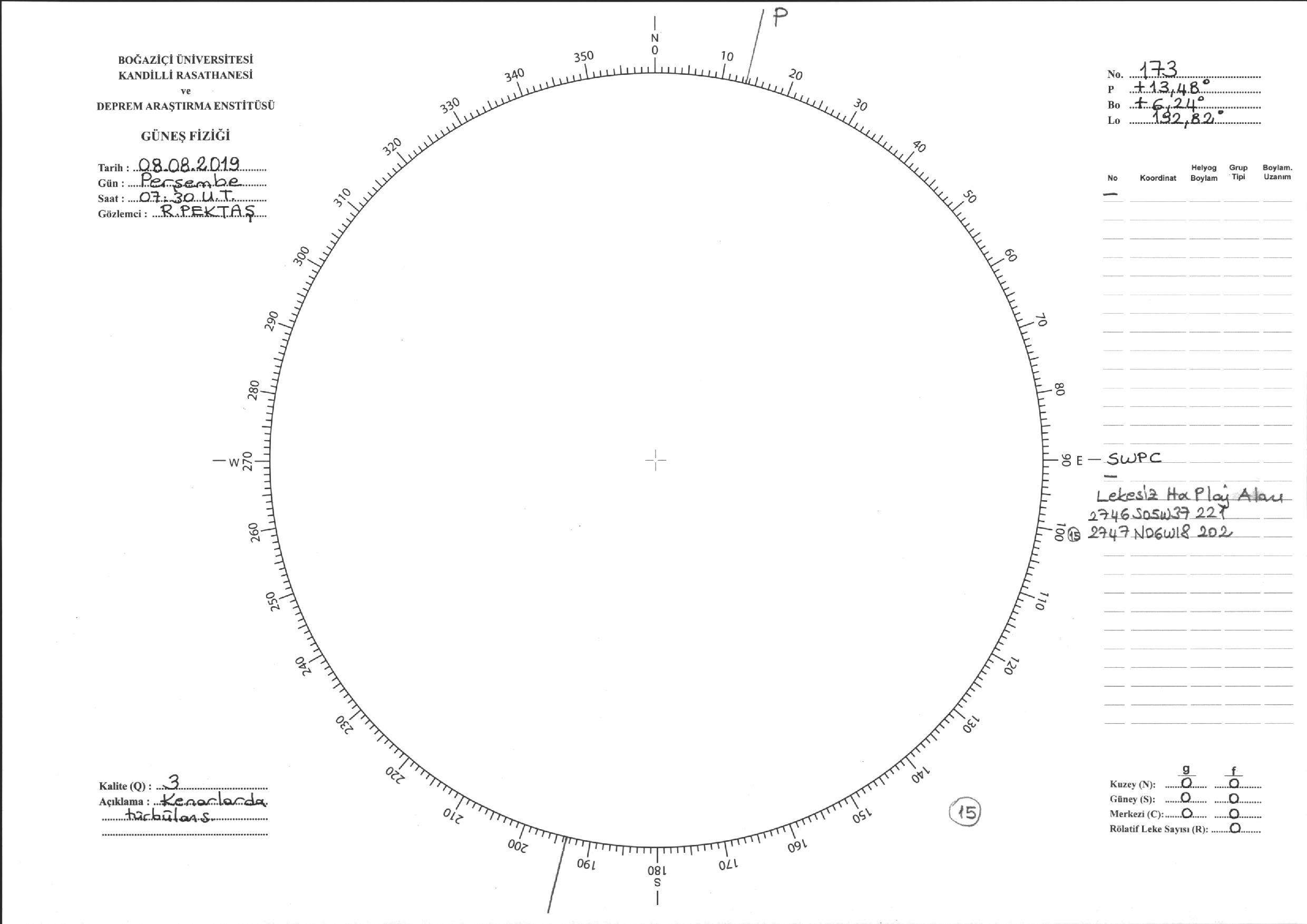 Güneş Lekesi Çizimi - 08.08.2019