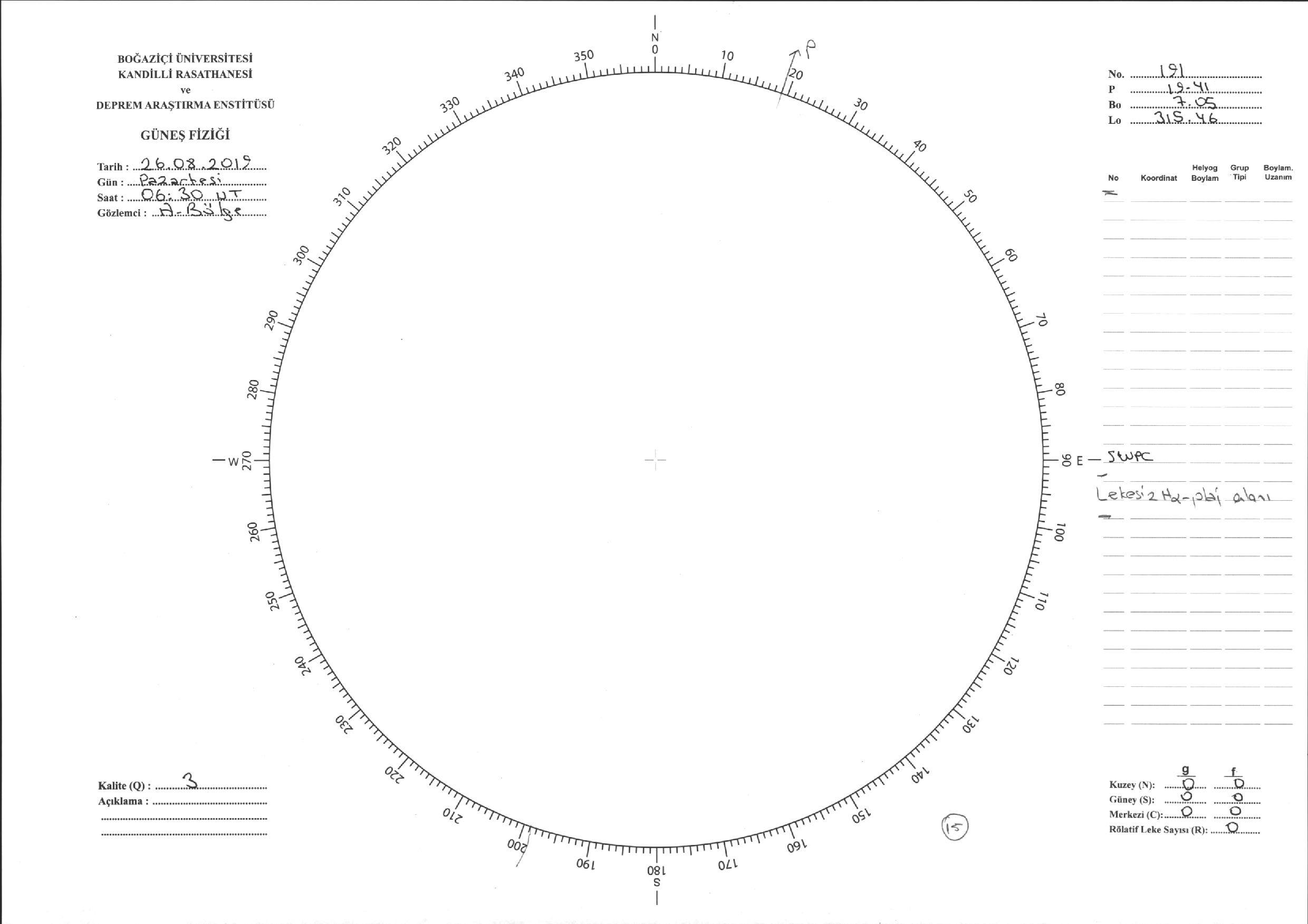 Güneş Lekesi Çizimi - 26.08.2019