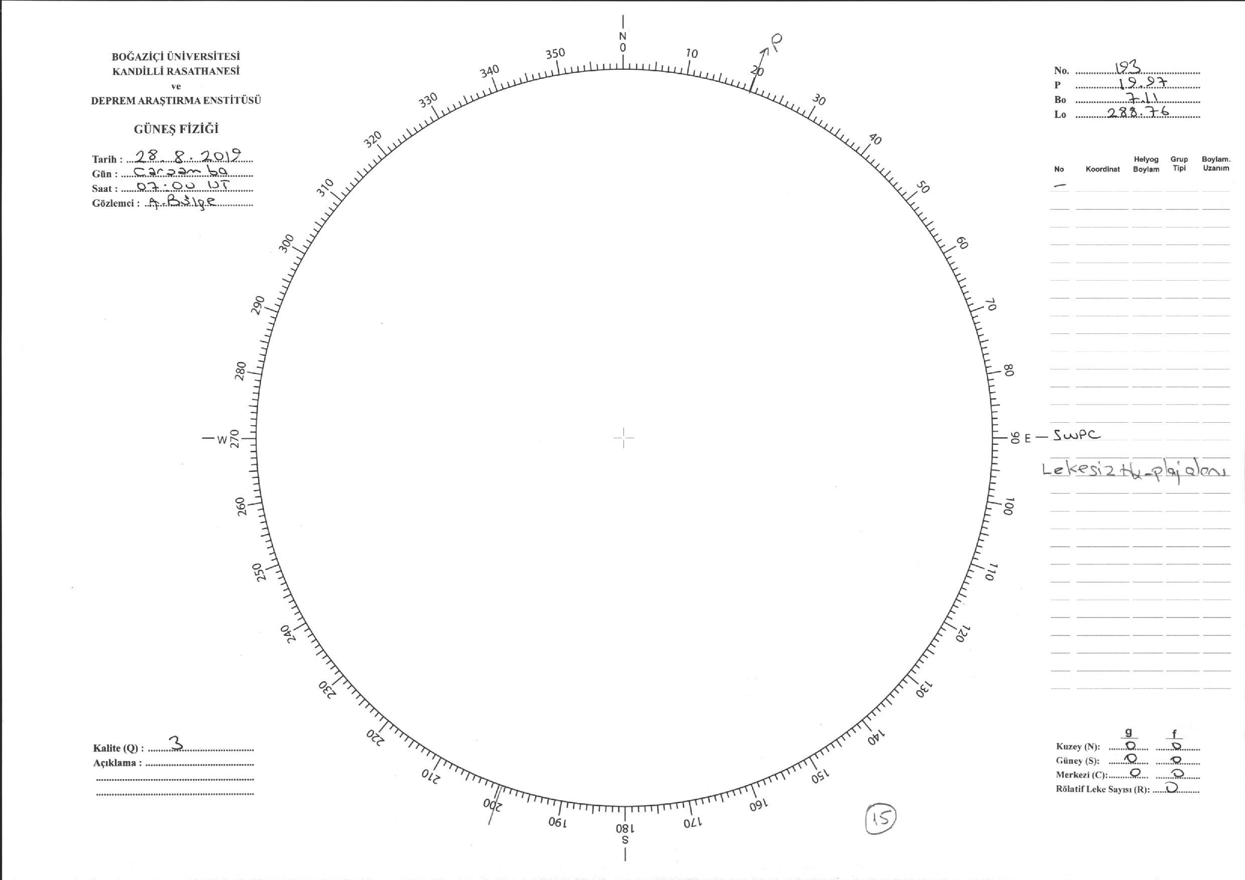 Güneş Lekesi Çizimi - 28.08.2019