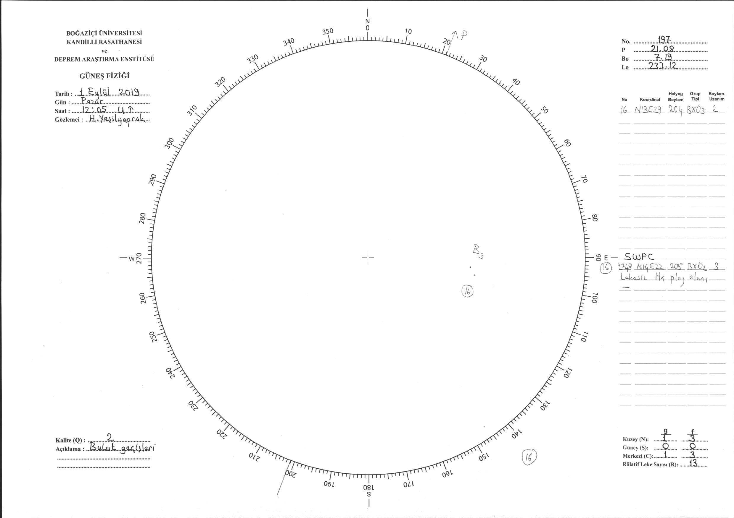 Güneş Lekesi Çizimi - 01.09.2019