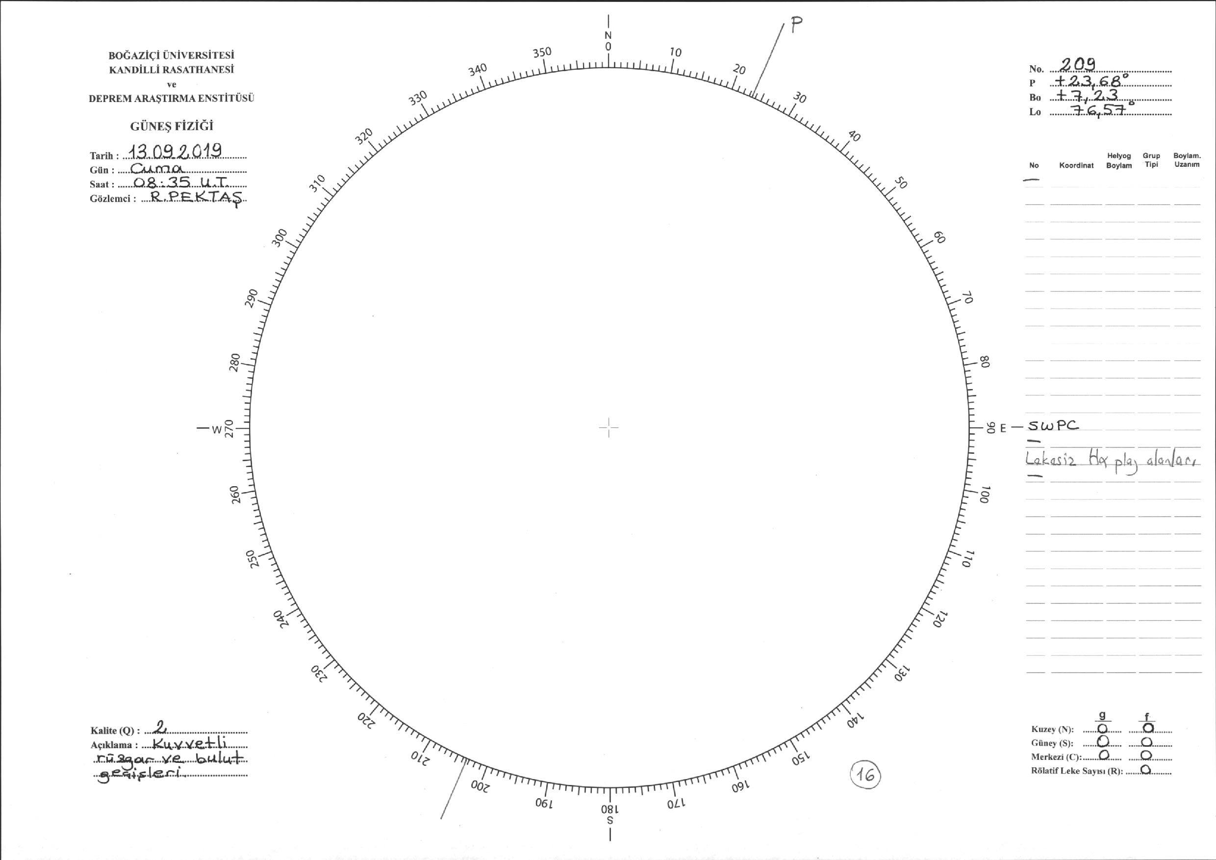 Güneş Lekesi Çizimi - 13.09.2019