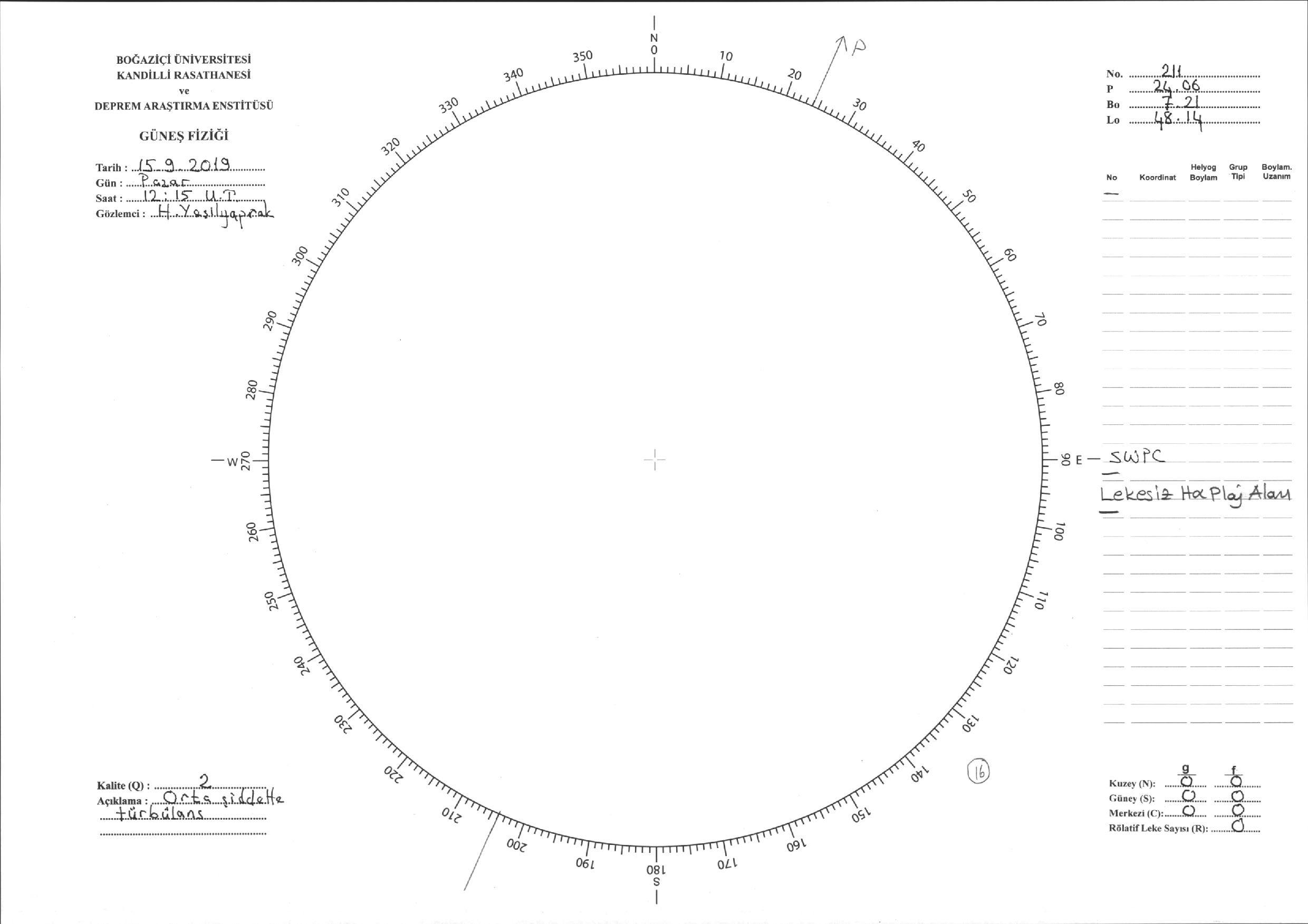 Güneş Lekesi Çizimi - 15.09.2019