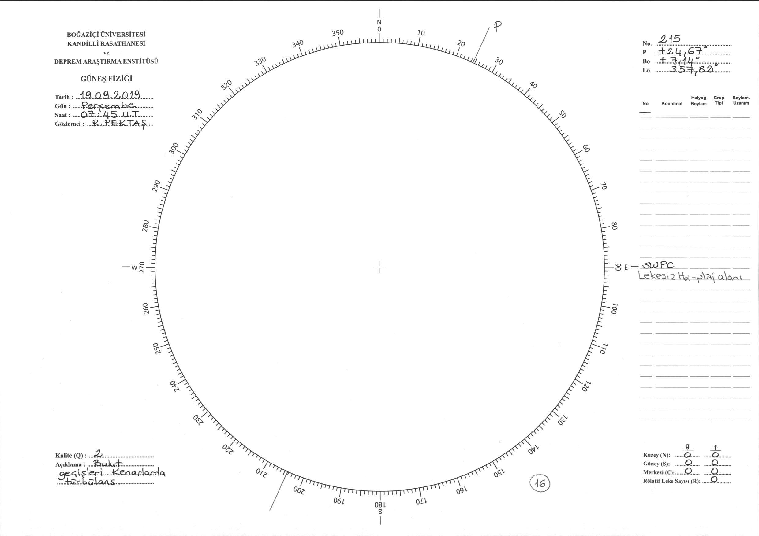 Güneş Lekesi Çizimi - 19.09.2019