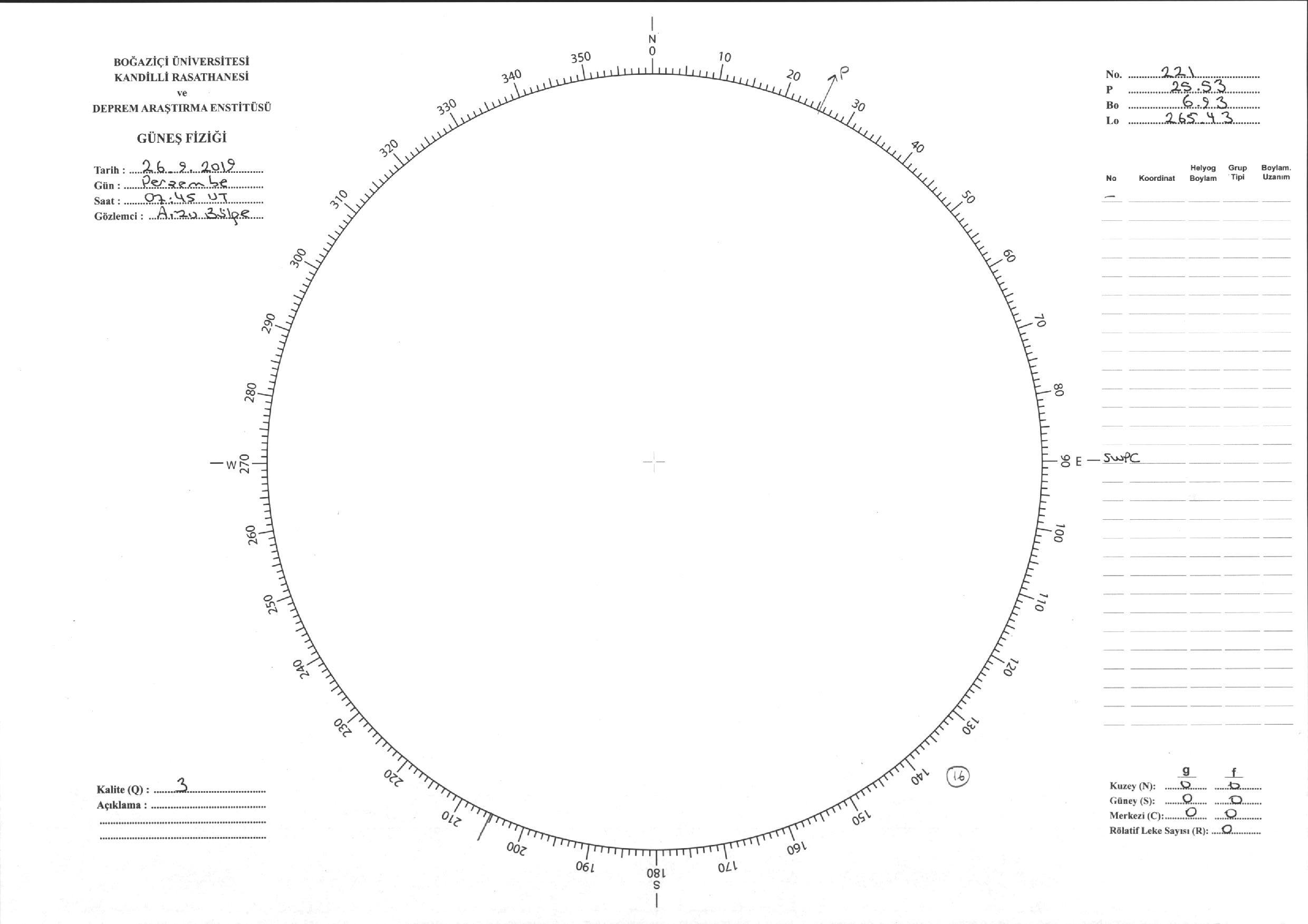 Güneş Lekesi Çizimi - 26.09.2019