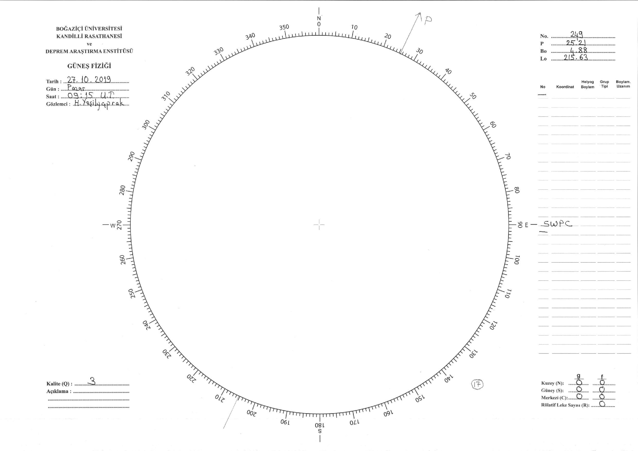 Güneş Lekesi Çizimi - 27.10.2019
