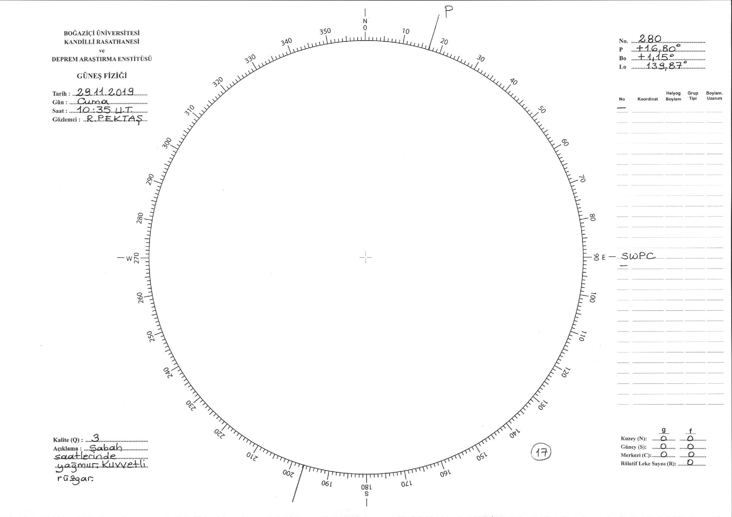 Güneş Lekesi Çizimi - 29.11.2019
