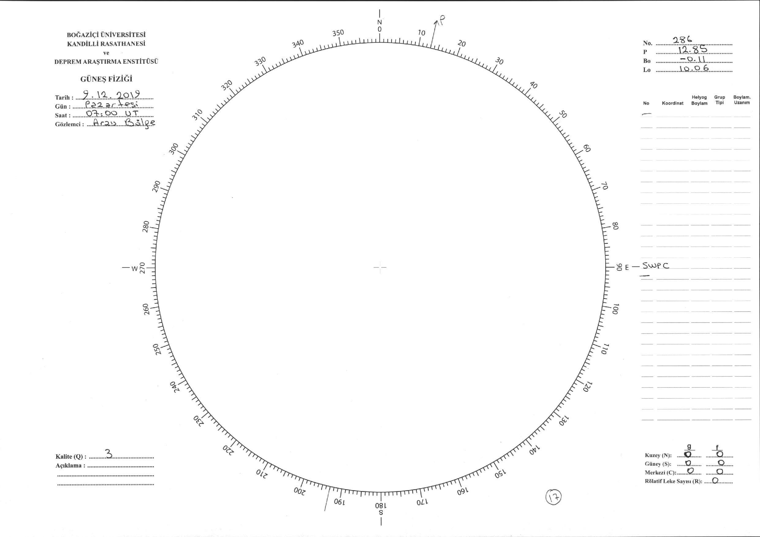 Güneş Lekesi Çizimi - 09.12.2019