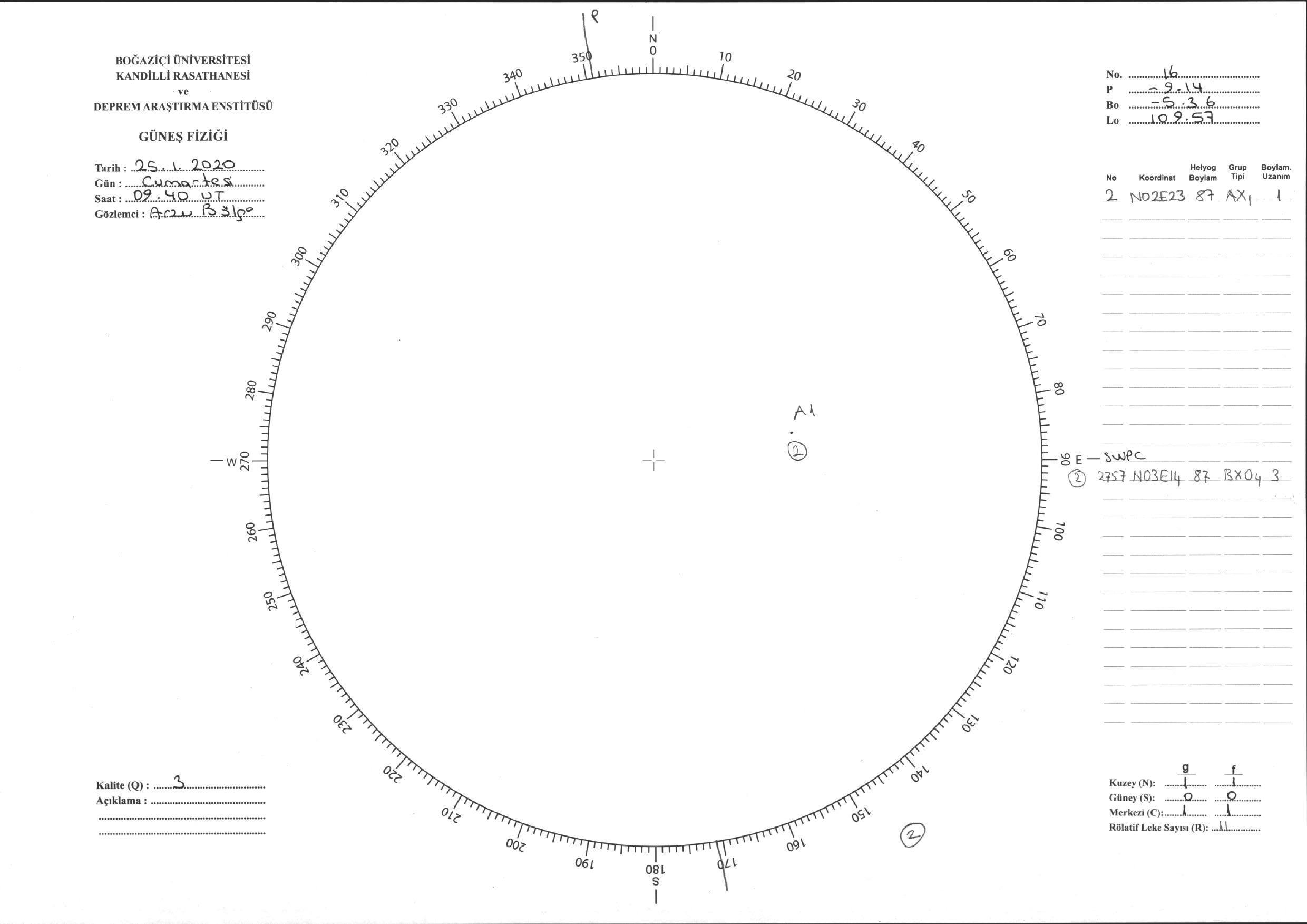 Güneş Lekesi Çizimi - 25.01.2020
