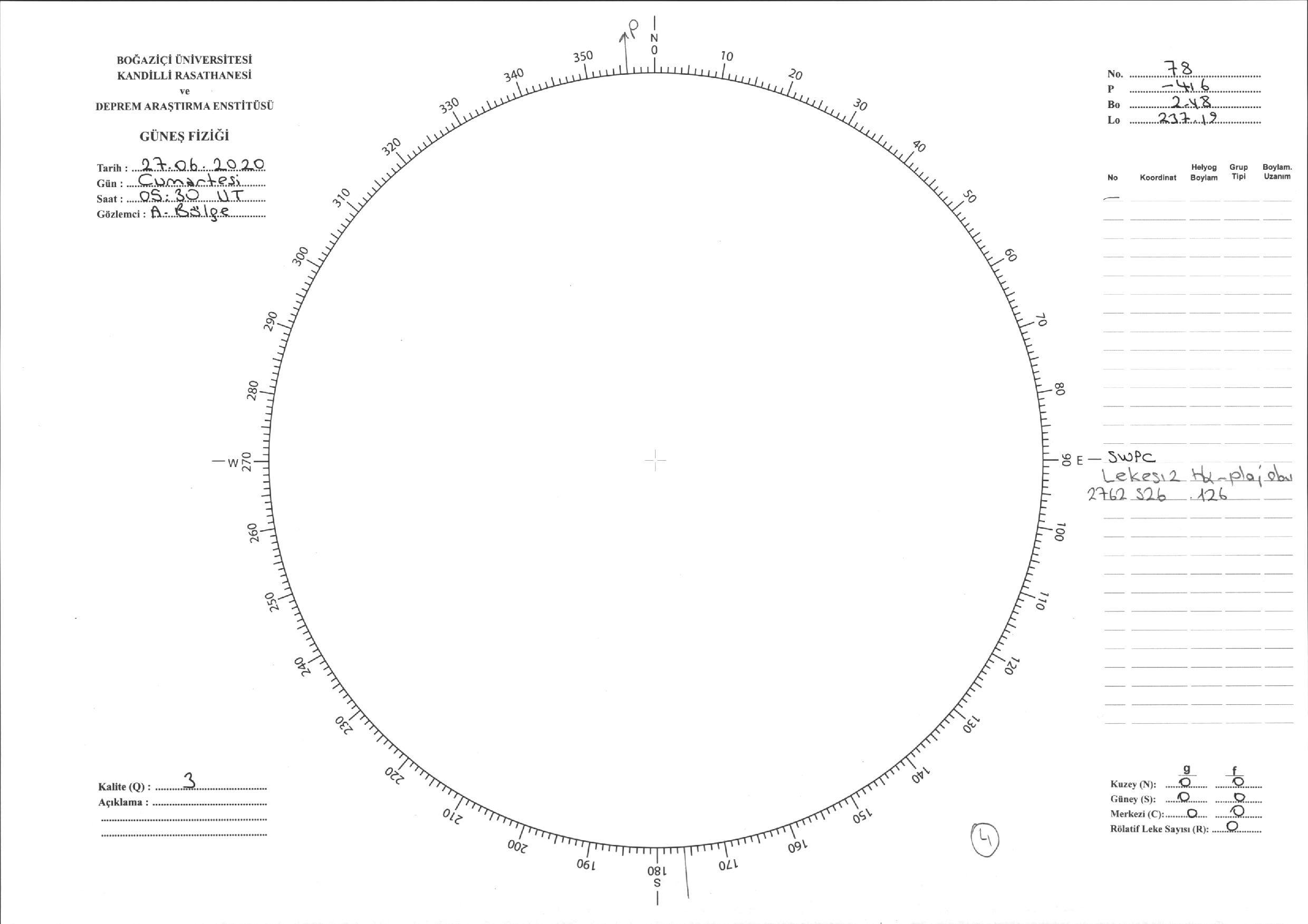 Güneş Lekesi Çizimi - 27.06.2020