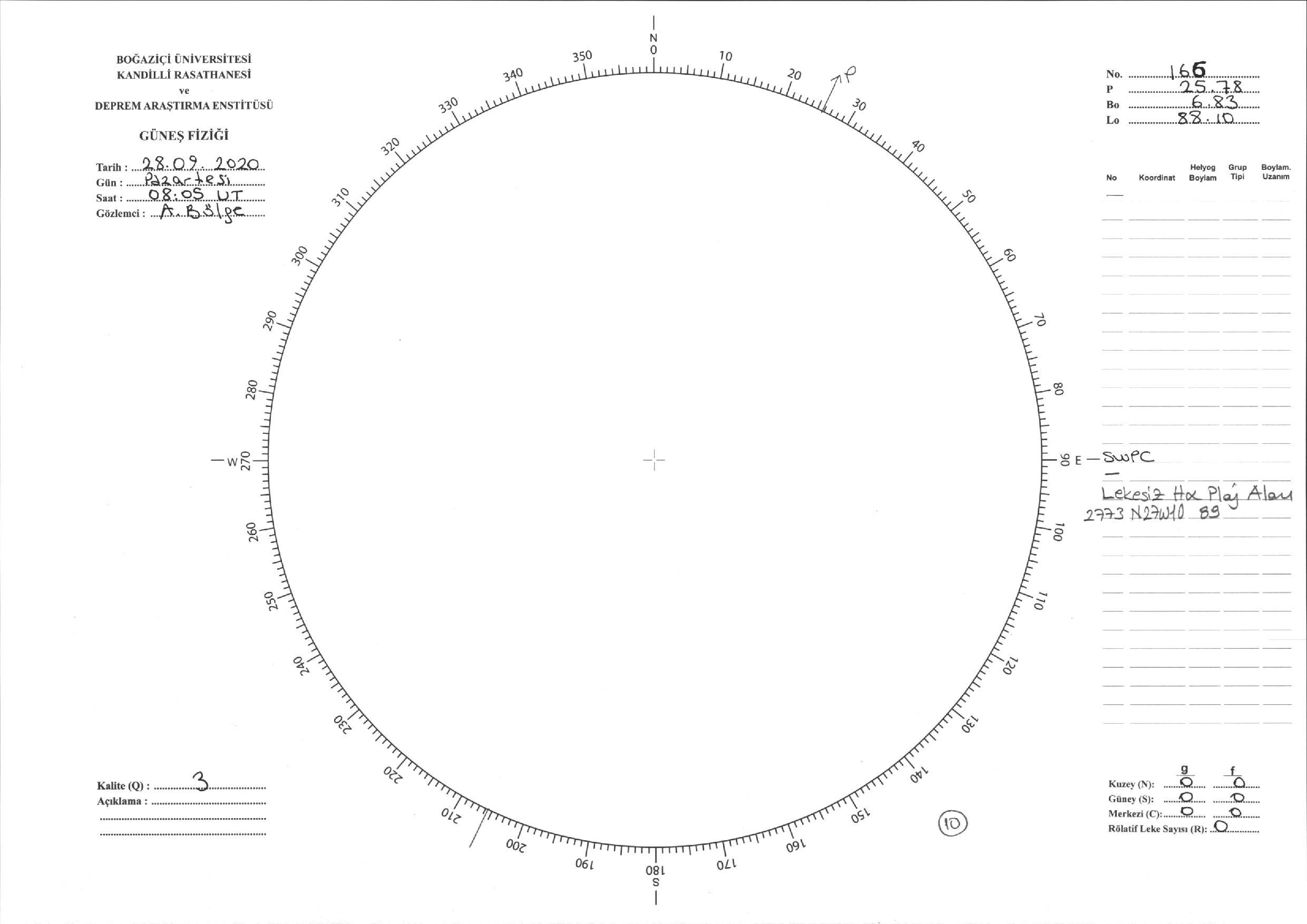 Güneş Lekesi Çizimi - 28.09.2020