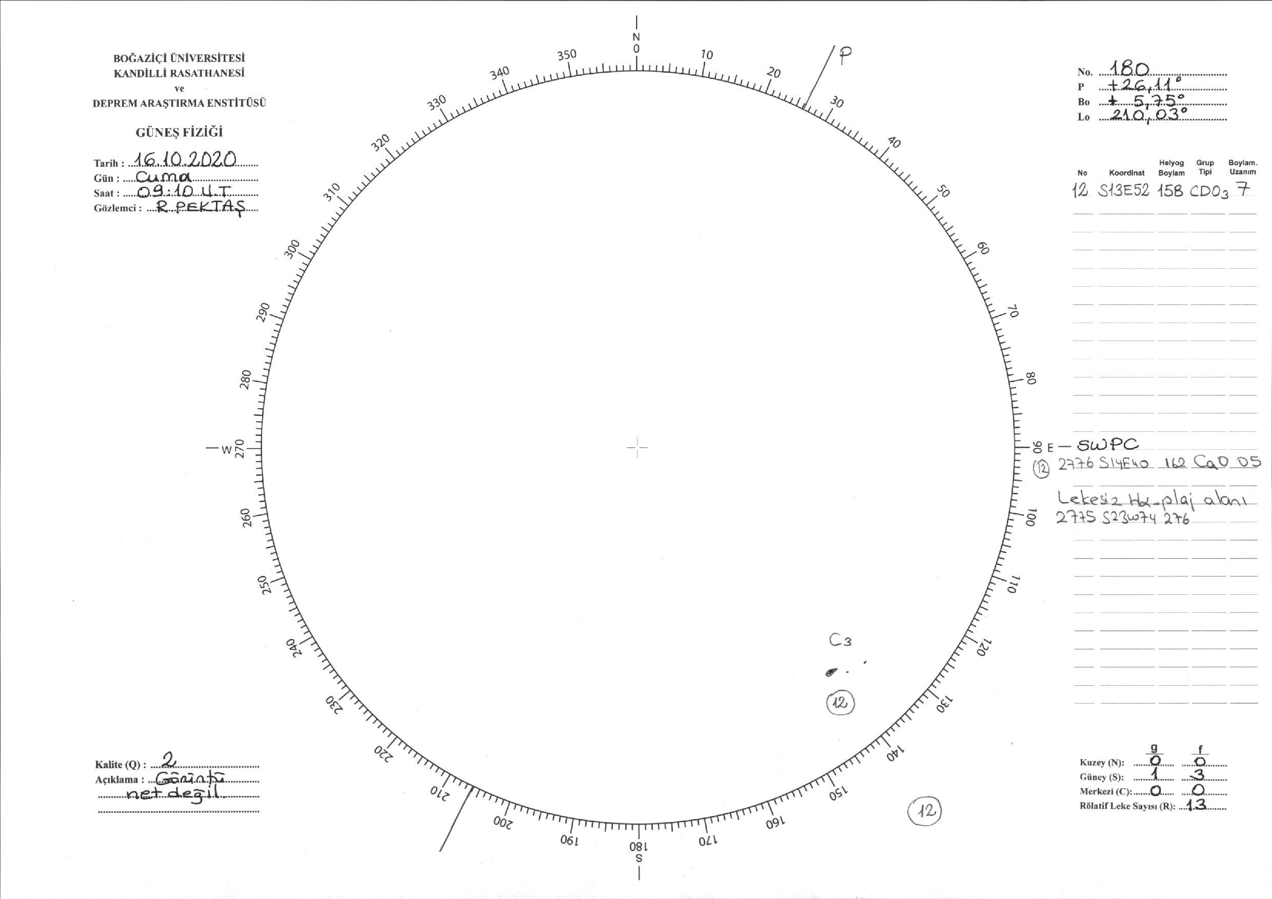 Güneş Lekesi Çizimi - 16.10.2020