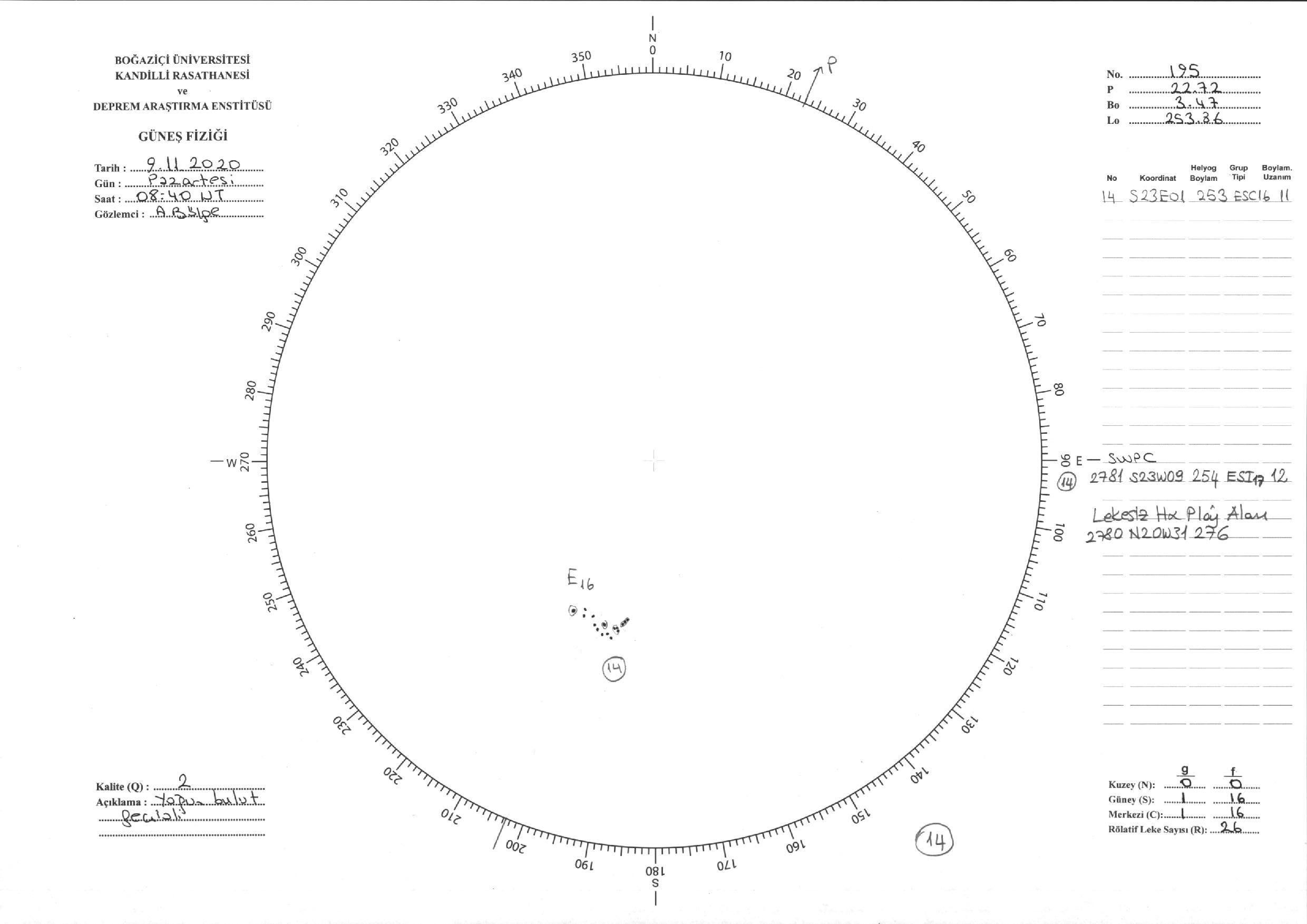 Güneş Lekesi Çizimi - 09.11.2020