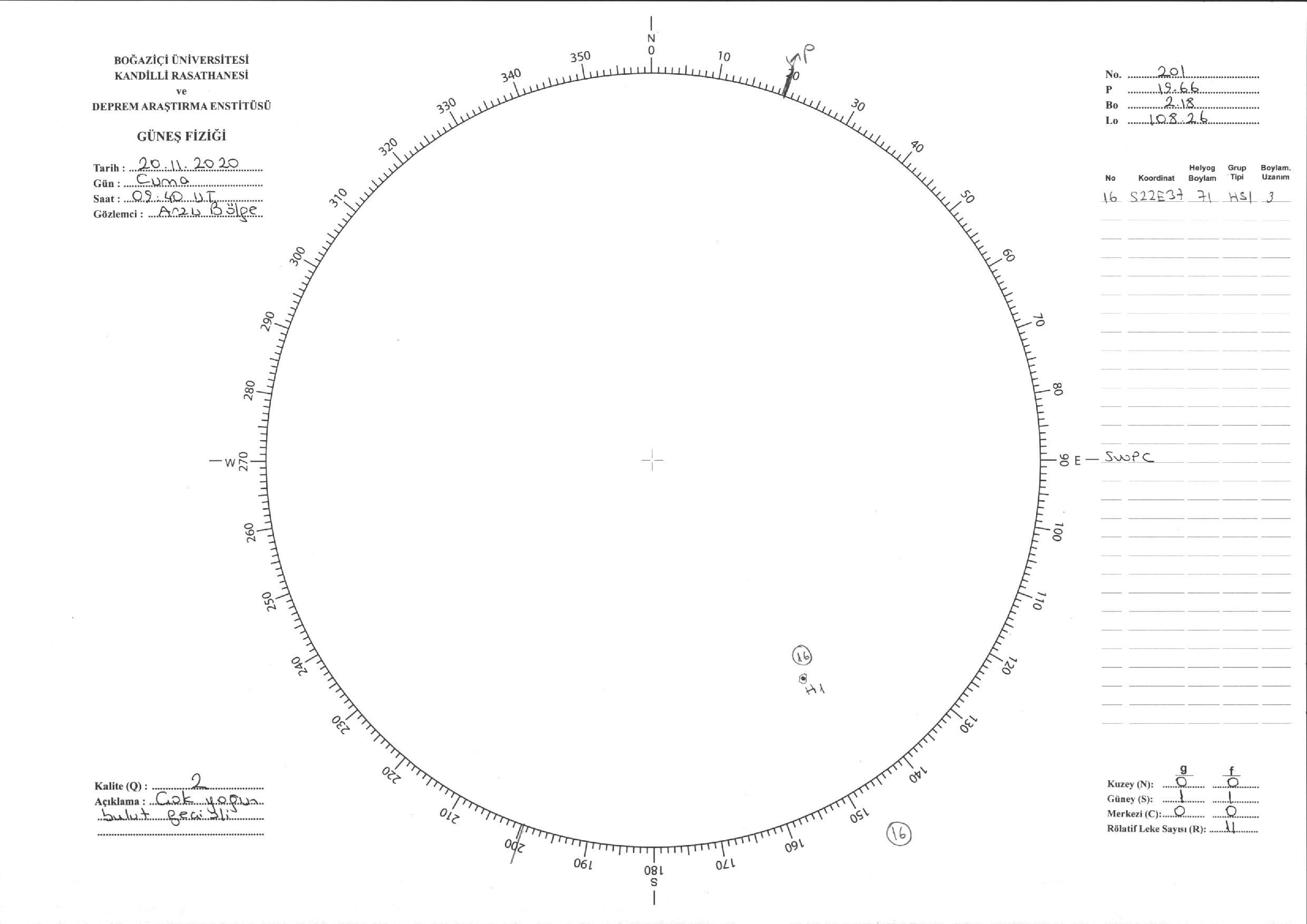 Güneş Lekesi Çizimi - 20.11.2020