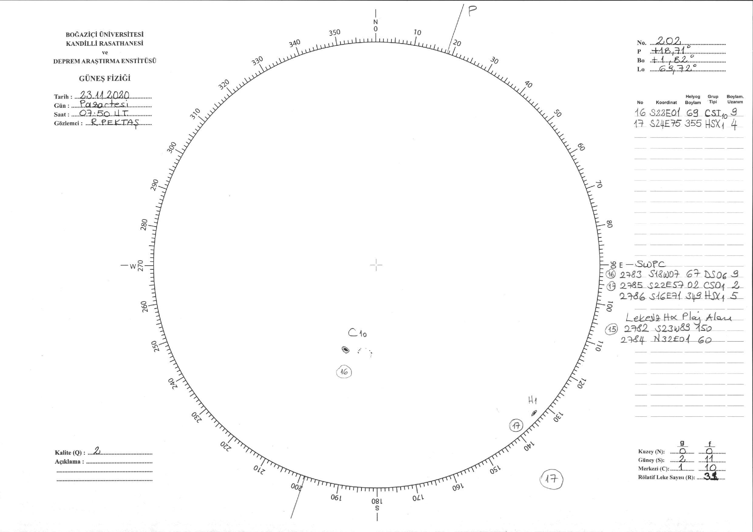 Güneş Lekesi Çizimi - 23.11.2020