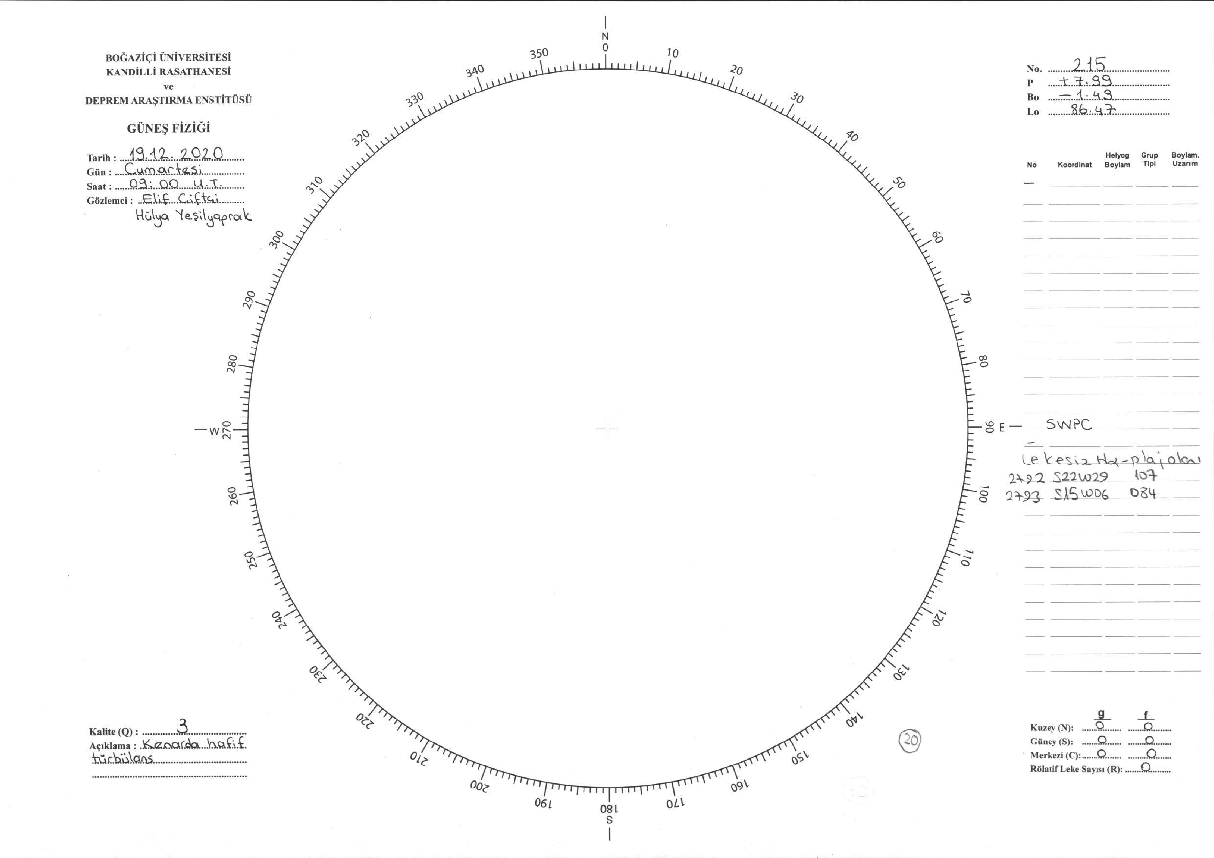 Güneş Lekesi Çizimi - 19.12.2020