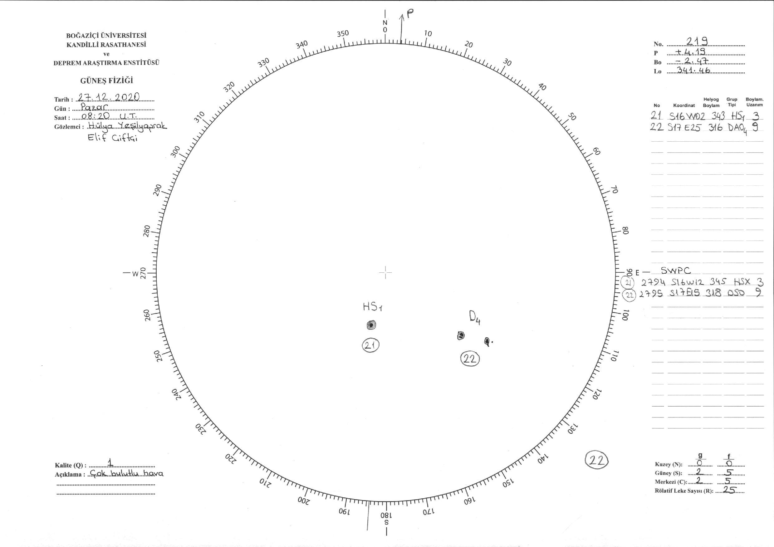 Güneş Lekesi Çizimi - 27.12.2020