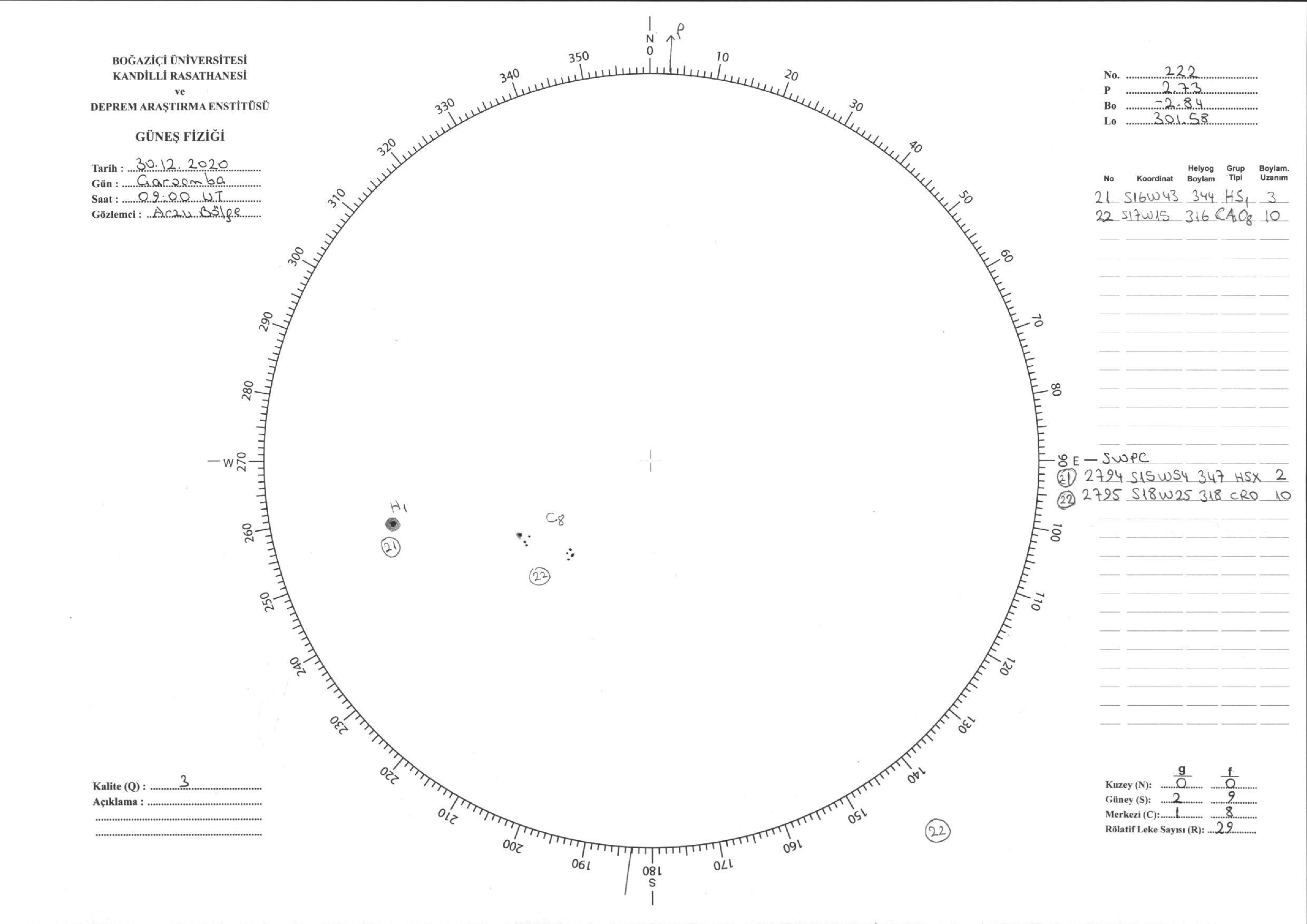 Güneş Lekesi Çizimi - 30.12.2020