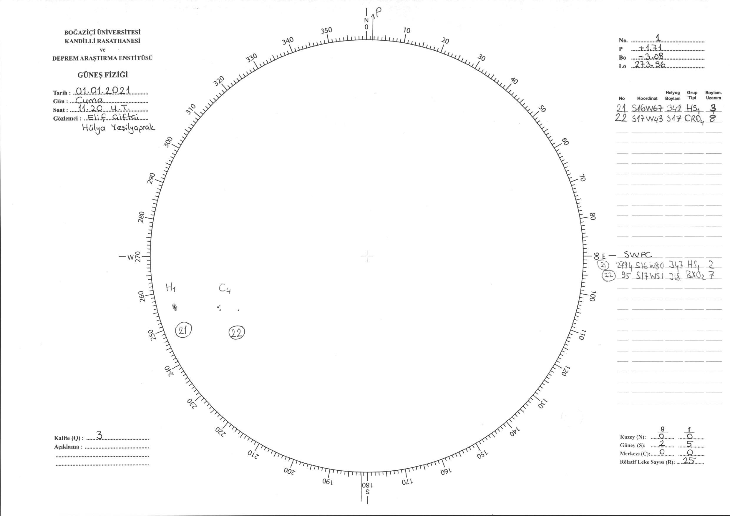 Güneş Lekesi Çizimi - 01.01.2021