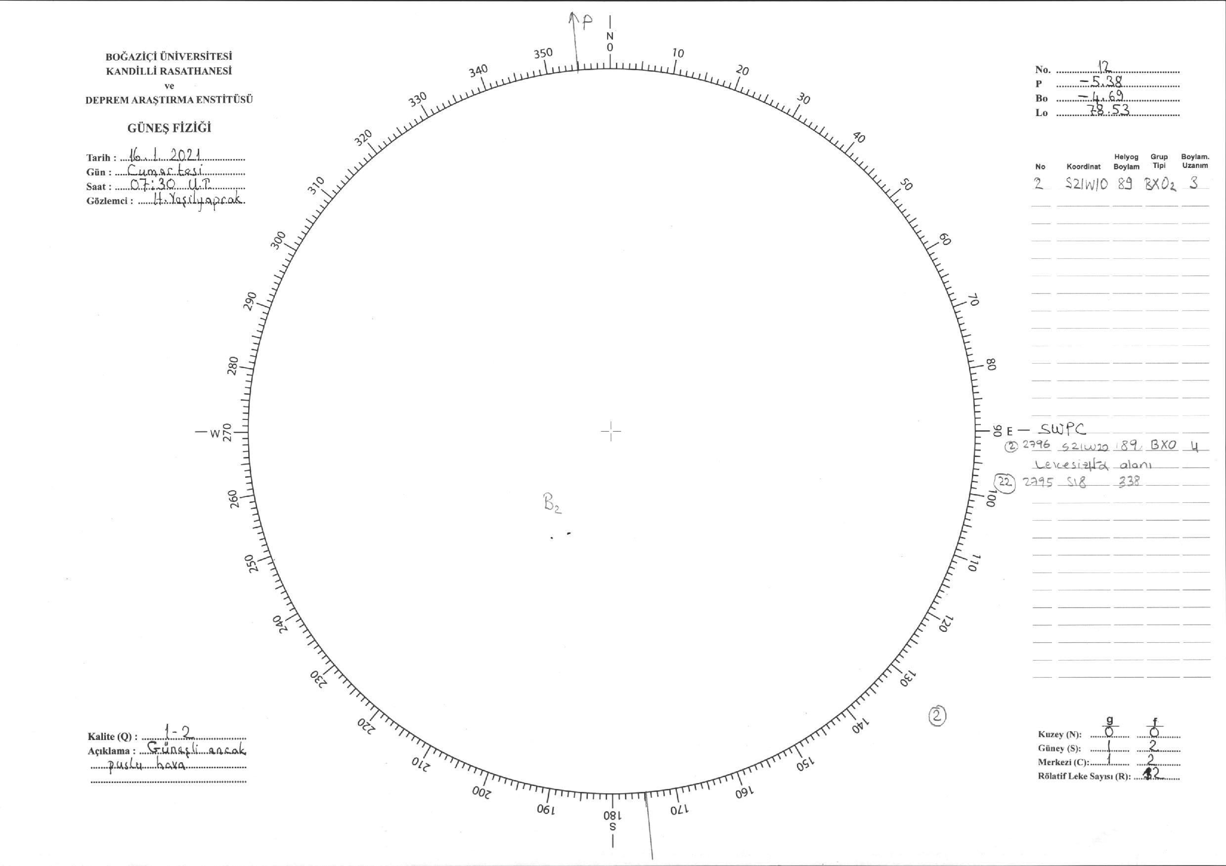 Güneş Lekesi Çizimi - 16.01.2021