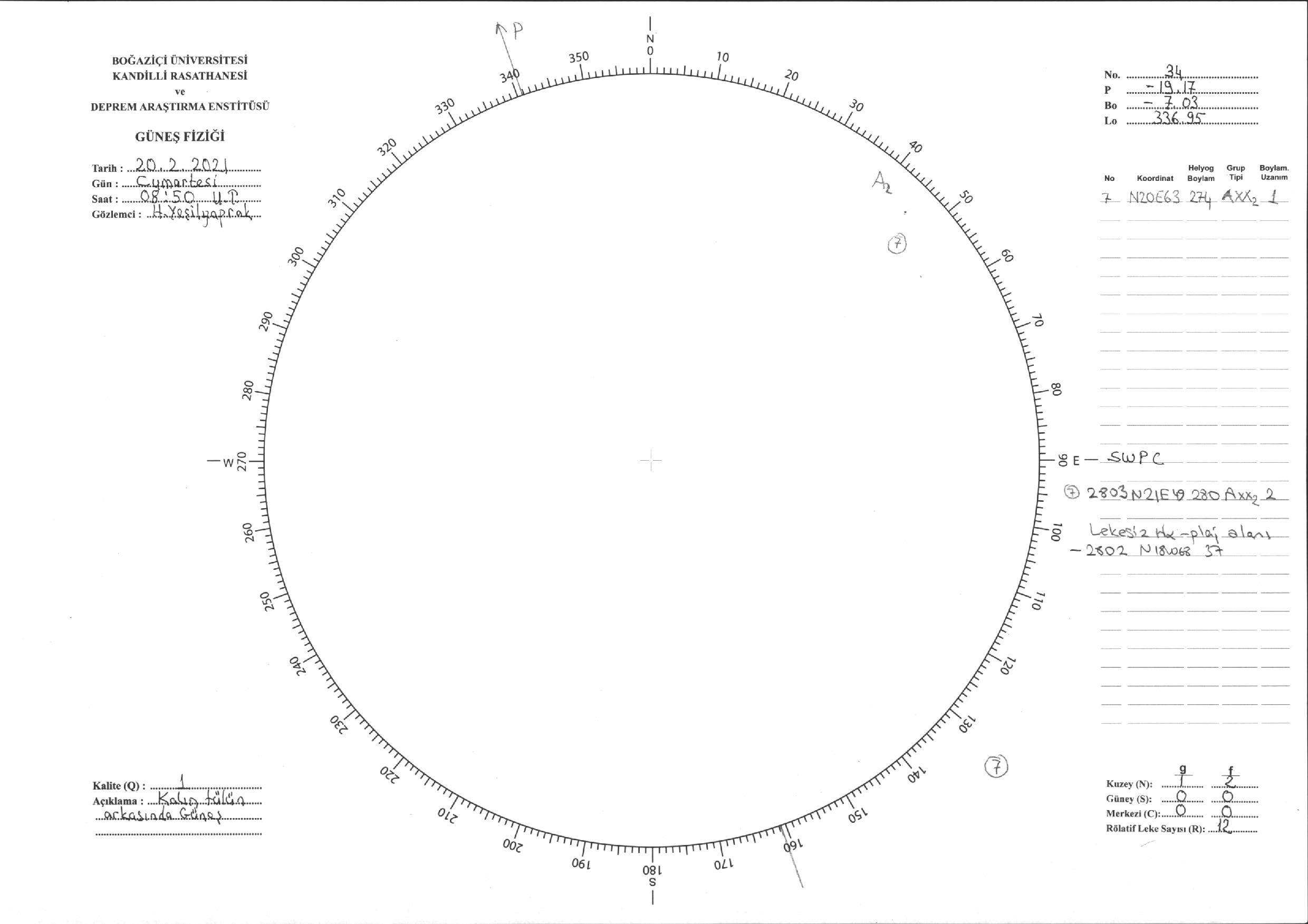 Güneş Lekesi Çizimi - 20.02.2021