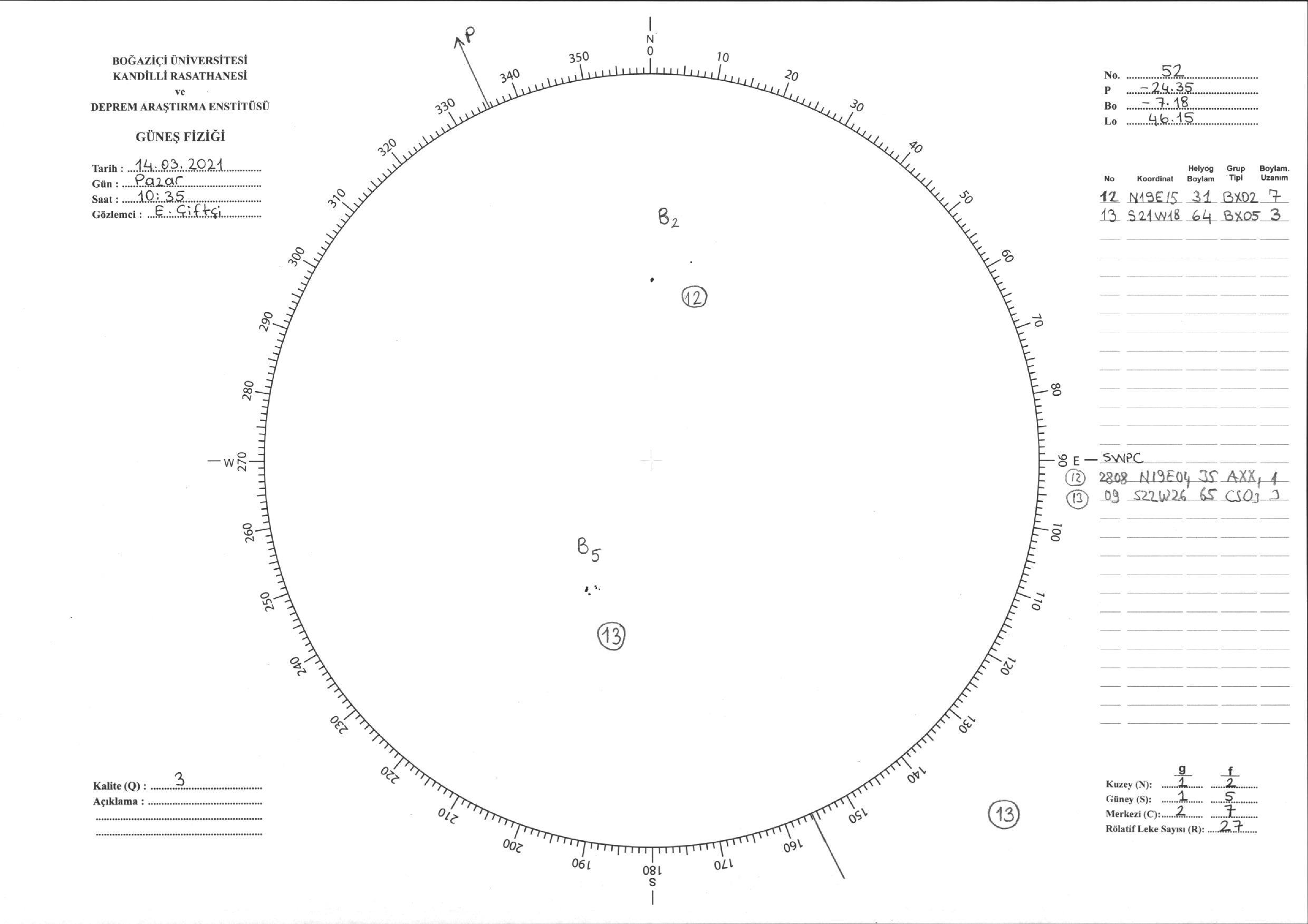 Güneş Lekesi Çizimi - 14.03.2021