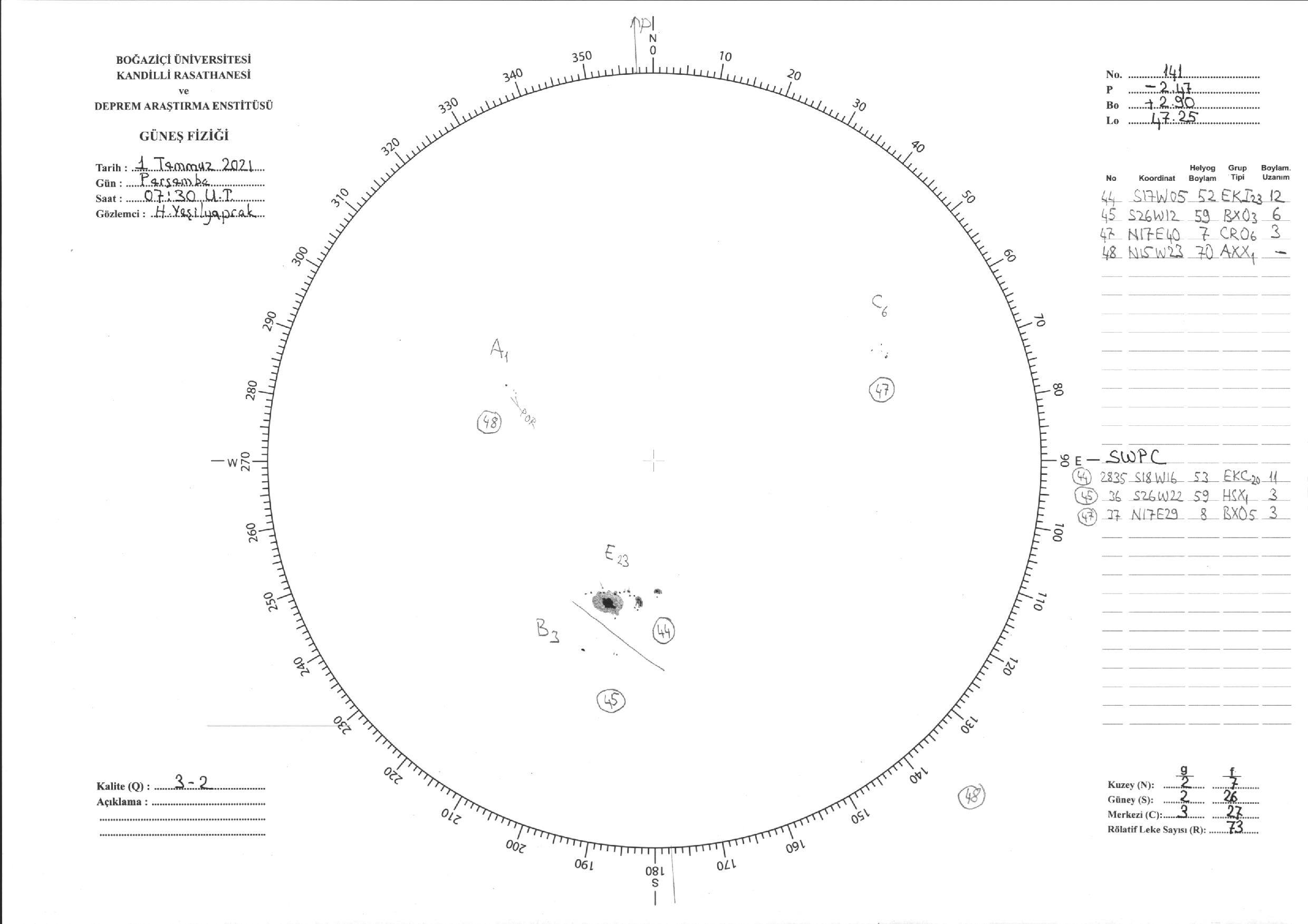 Güneş Lekesi Çizimi - 01.07.2021