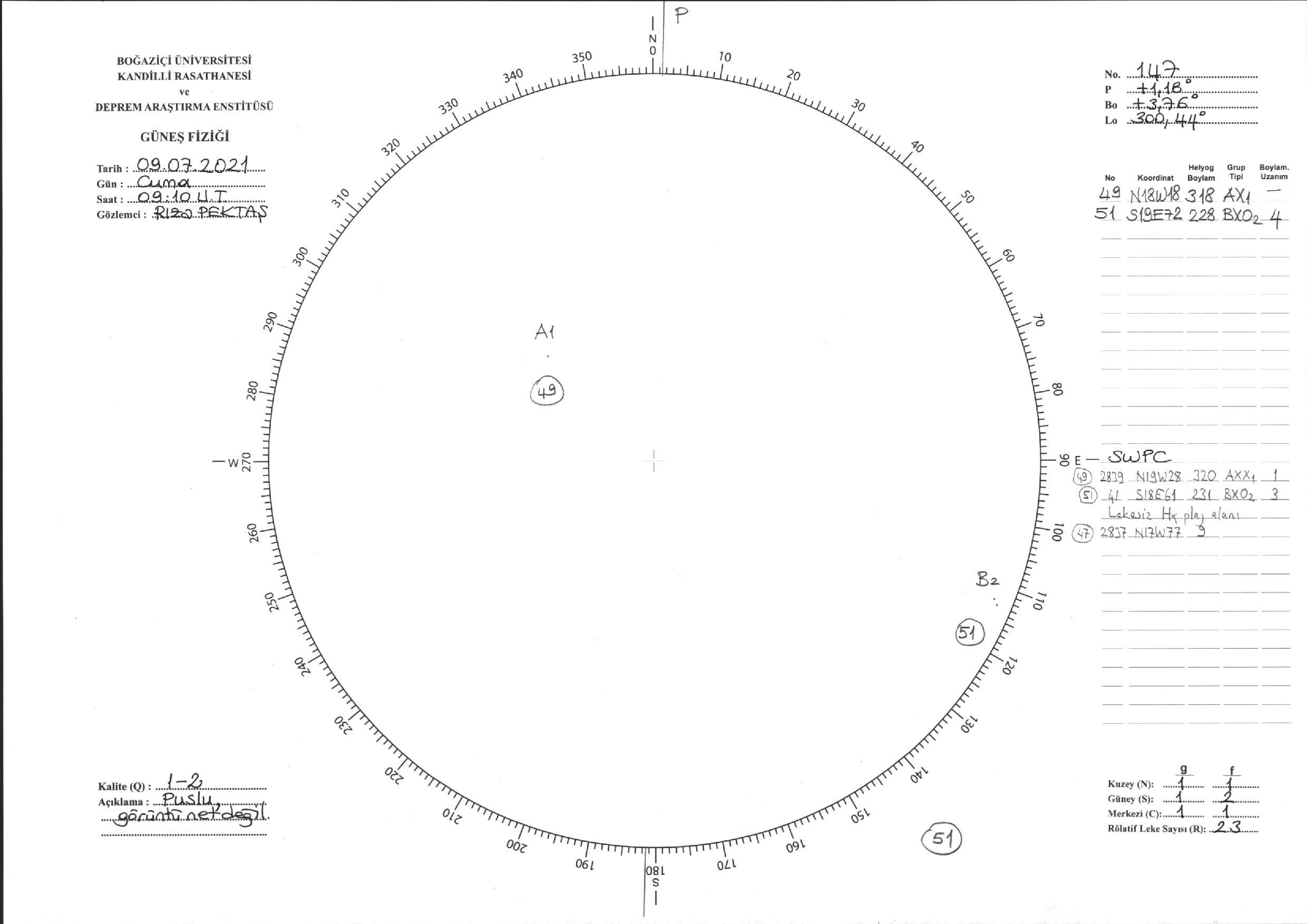 Güneş Lekesi Çizimi - 09.07.2021