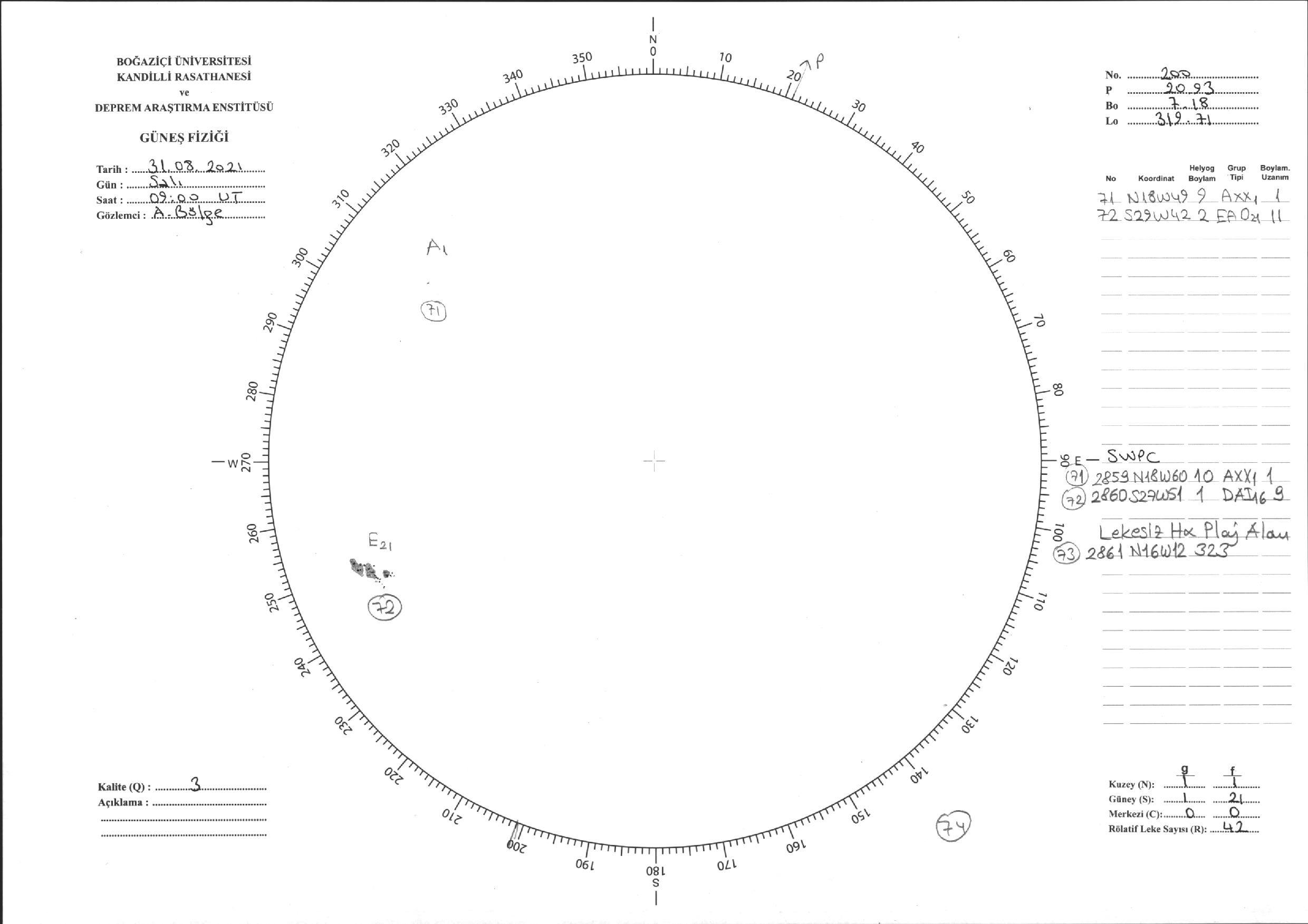Güneş Lekesi Çizimi - 31.08.2021