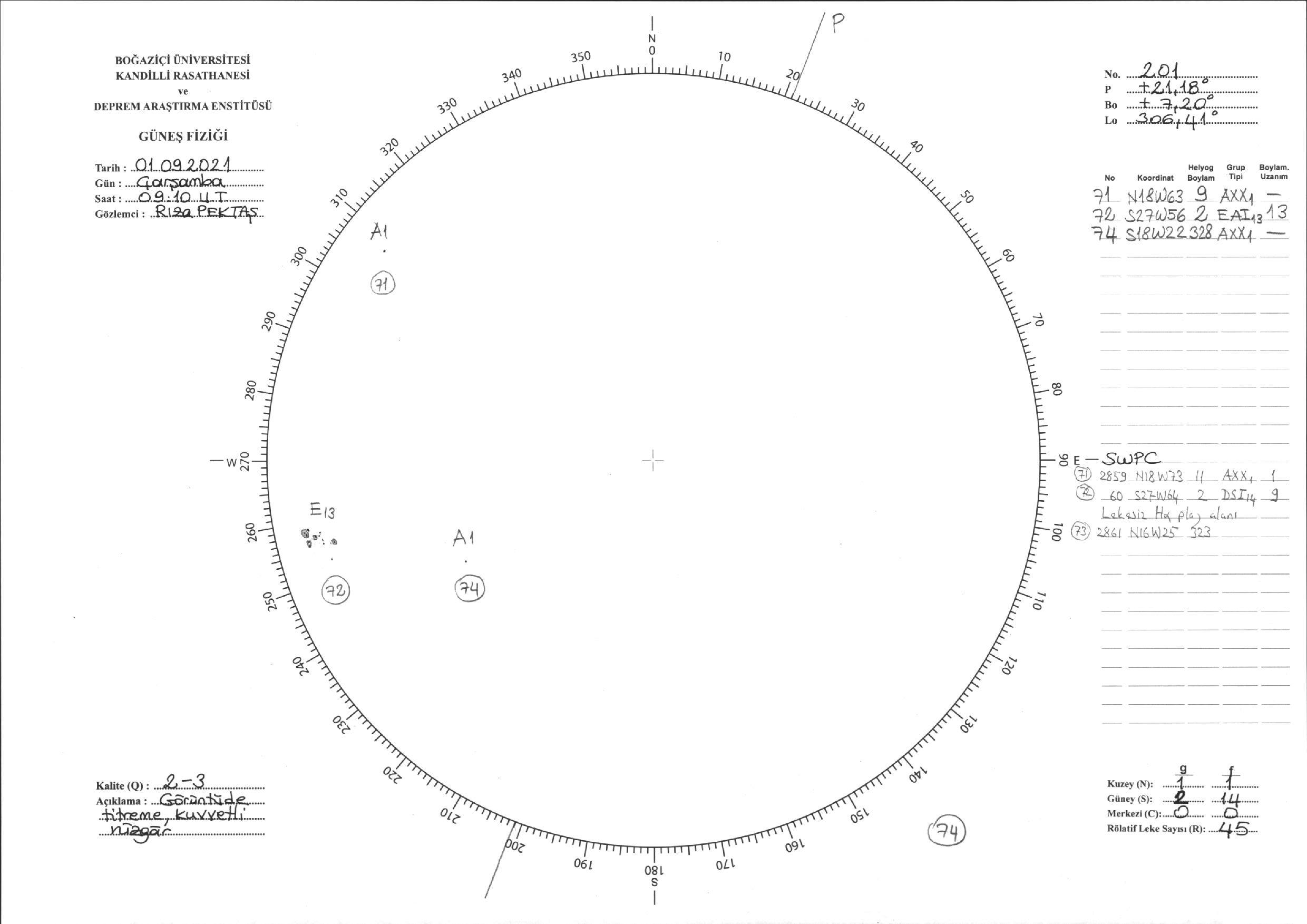 Güneş Lekesi Çizimi - 01.09.2021