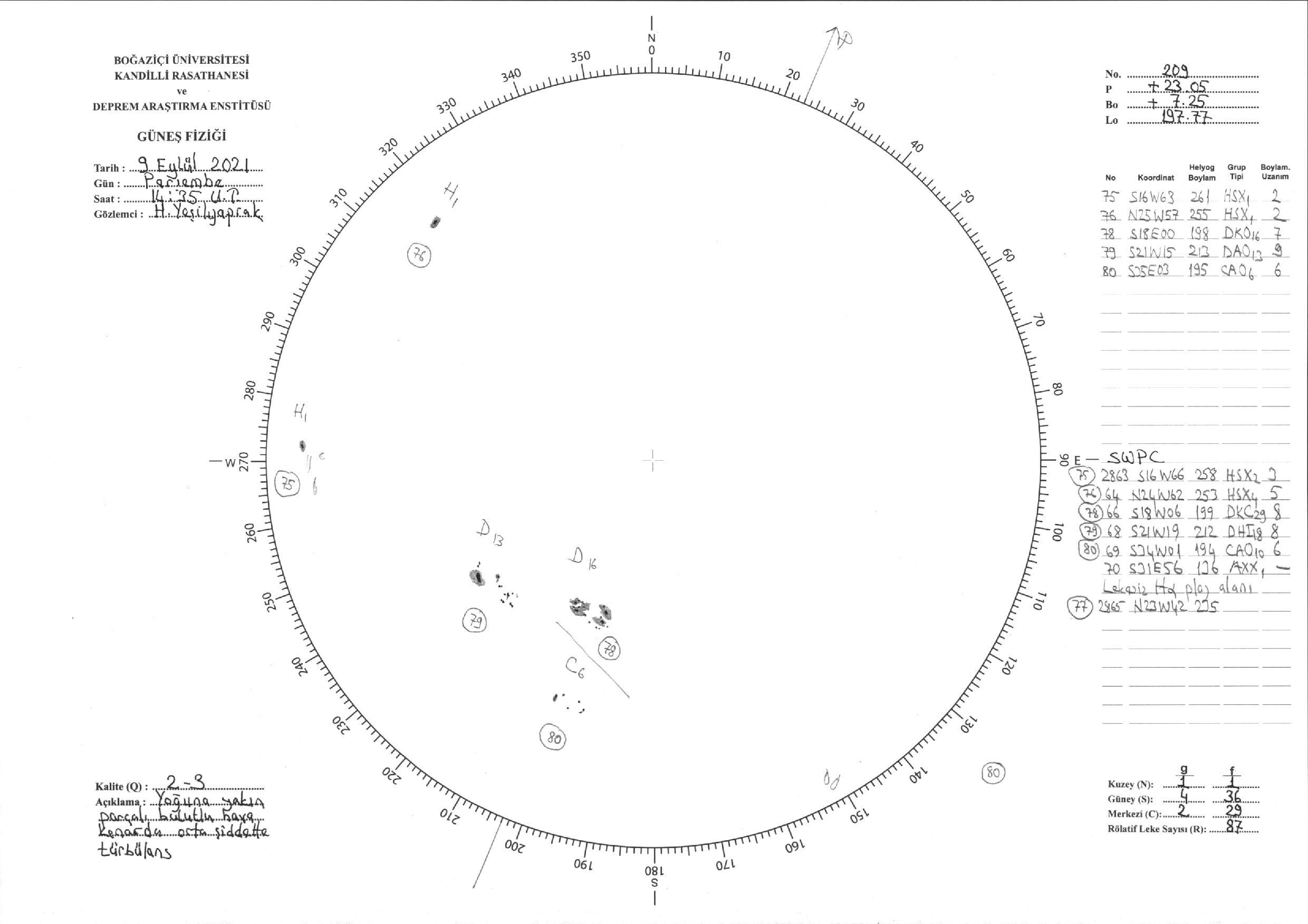 Güneş Lekesi Çizimi - 09.09.2021