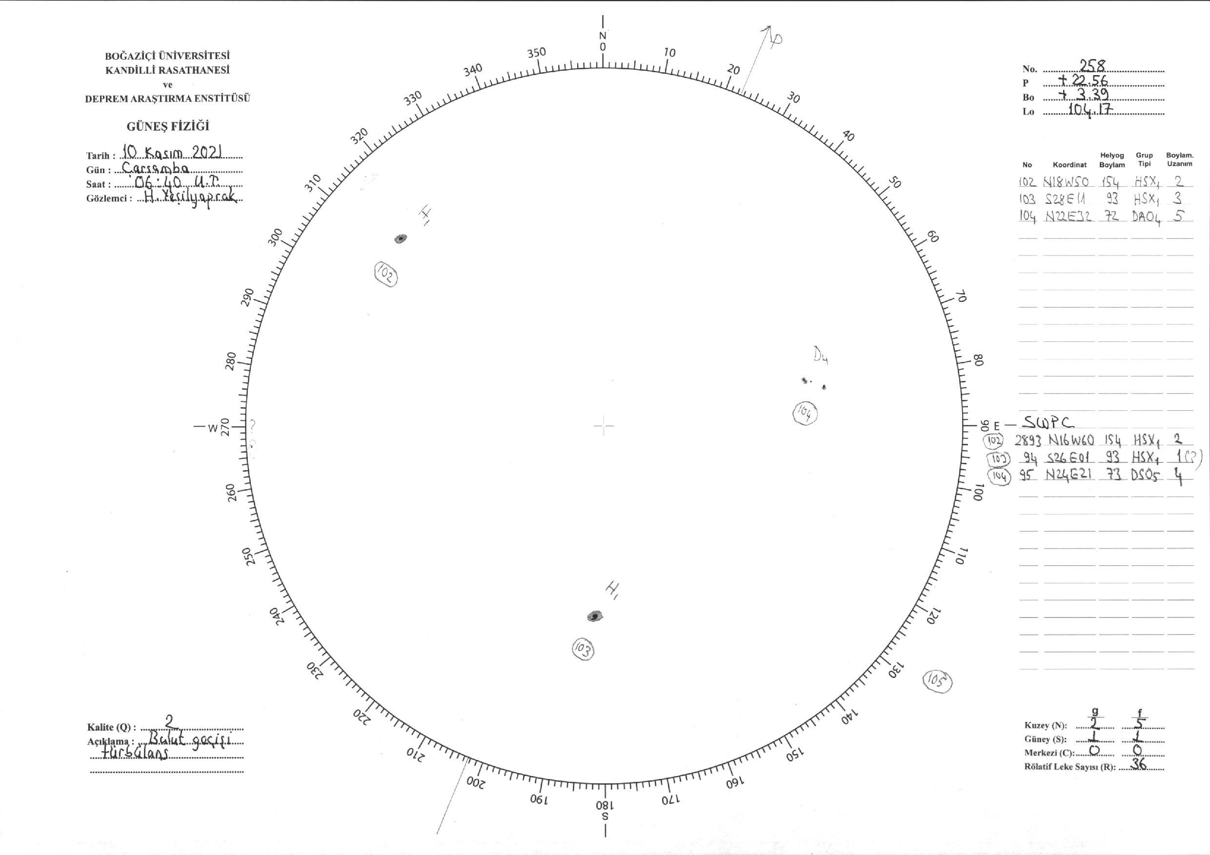 Güneş Lekesi Çizimi - 10.11.2021