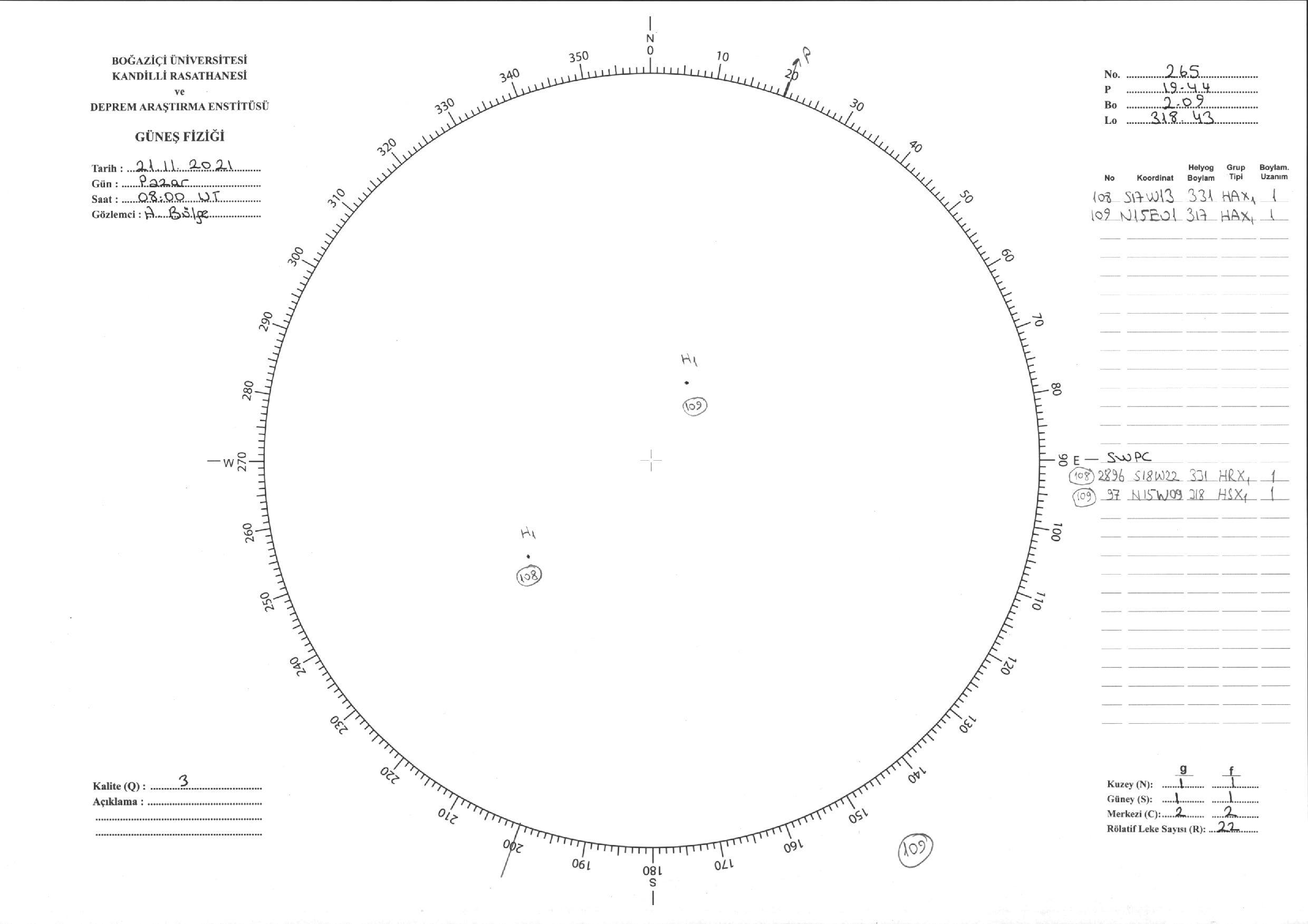 Güneş Lekesi Çizimi - 21.11.2021