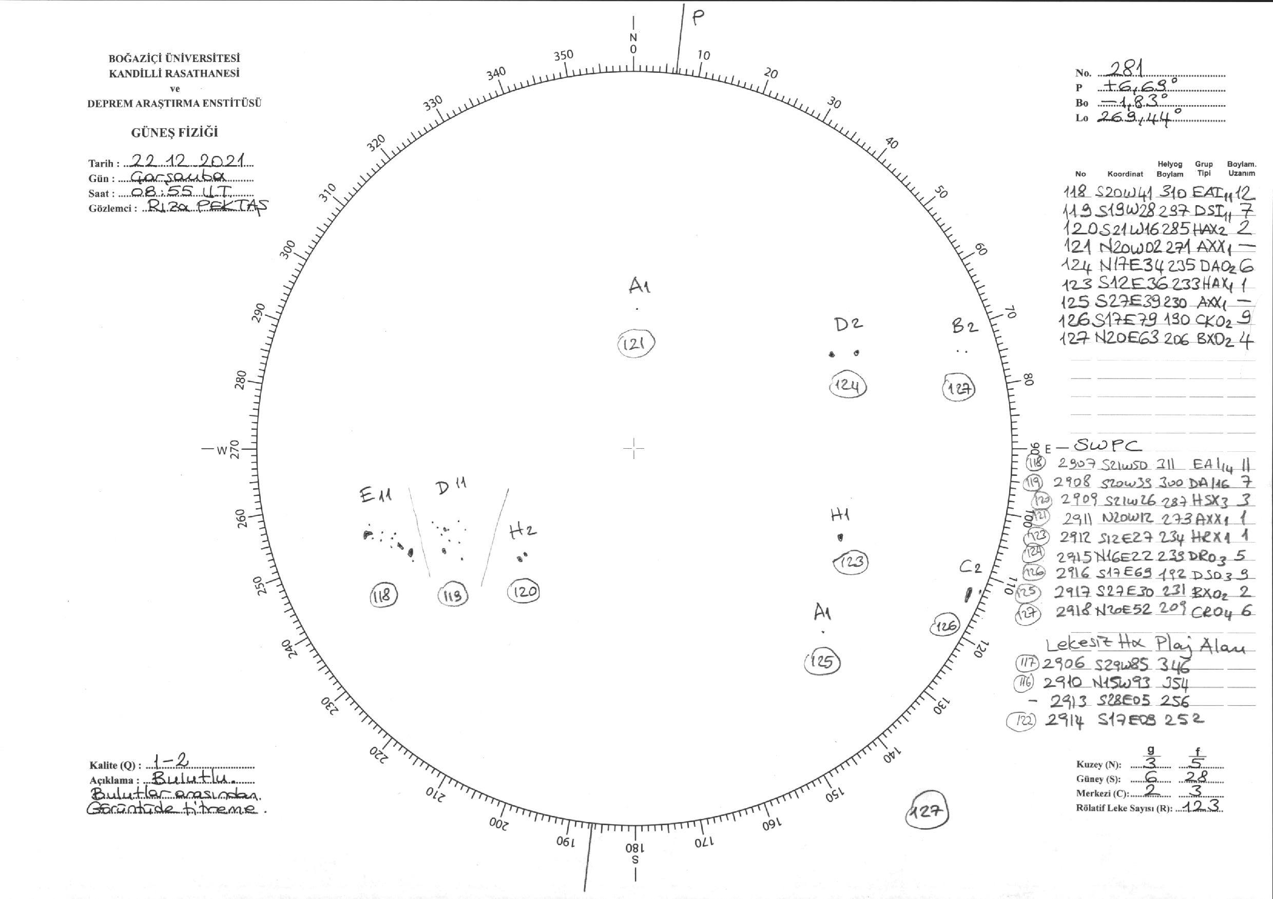 Güneş Lekesi Çizimi - 22.12.2021