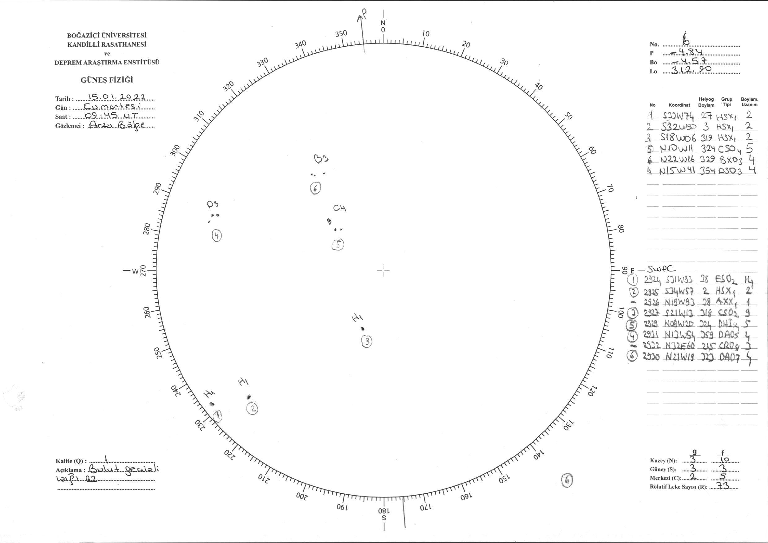 Güneş Lekesi Çizimi - 15.01.2022