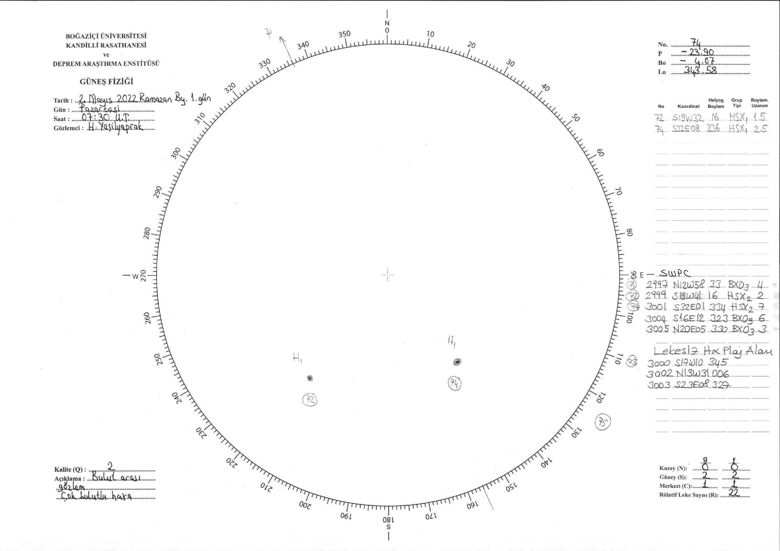 Güneş Lekesi Çizimi - 02.05.2022
