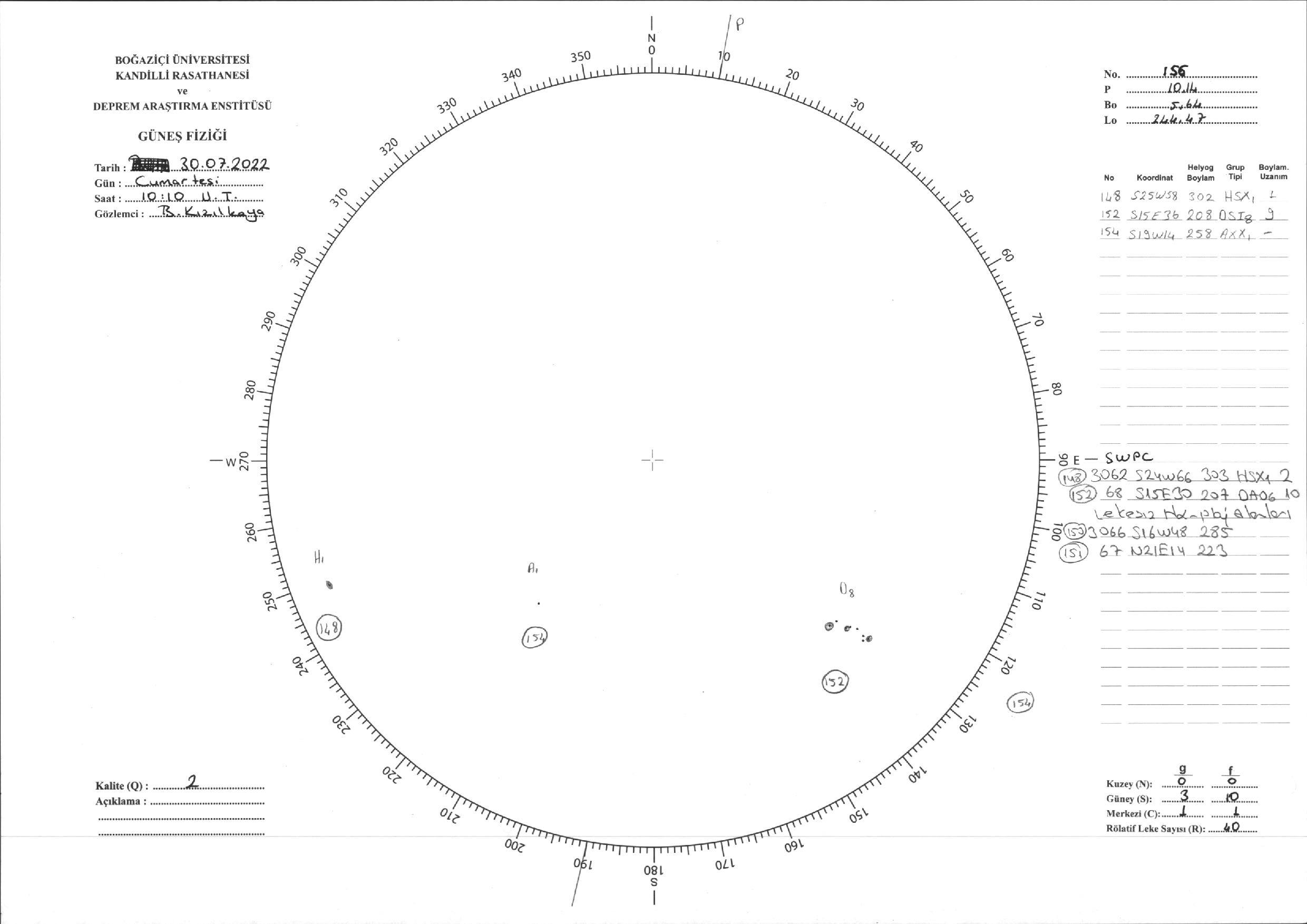 Güneş Lekesi Çizimi - 30.07.2022
