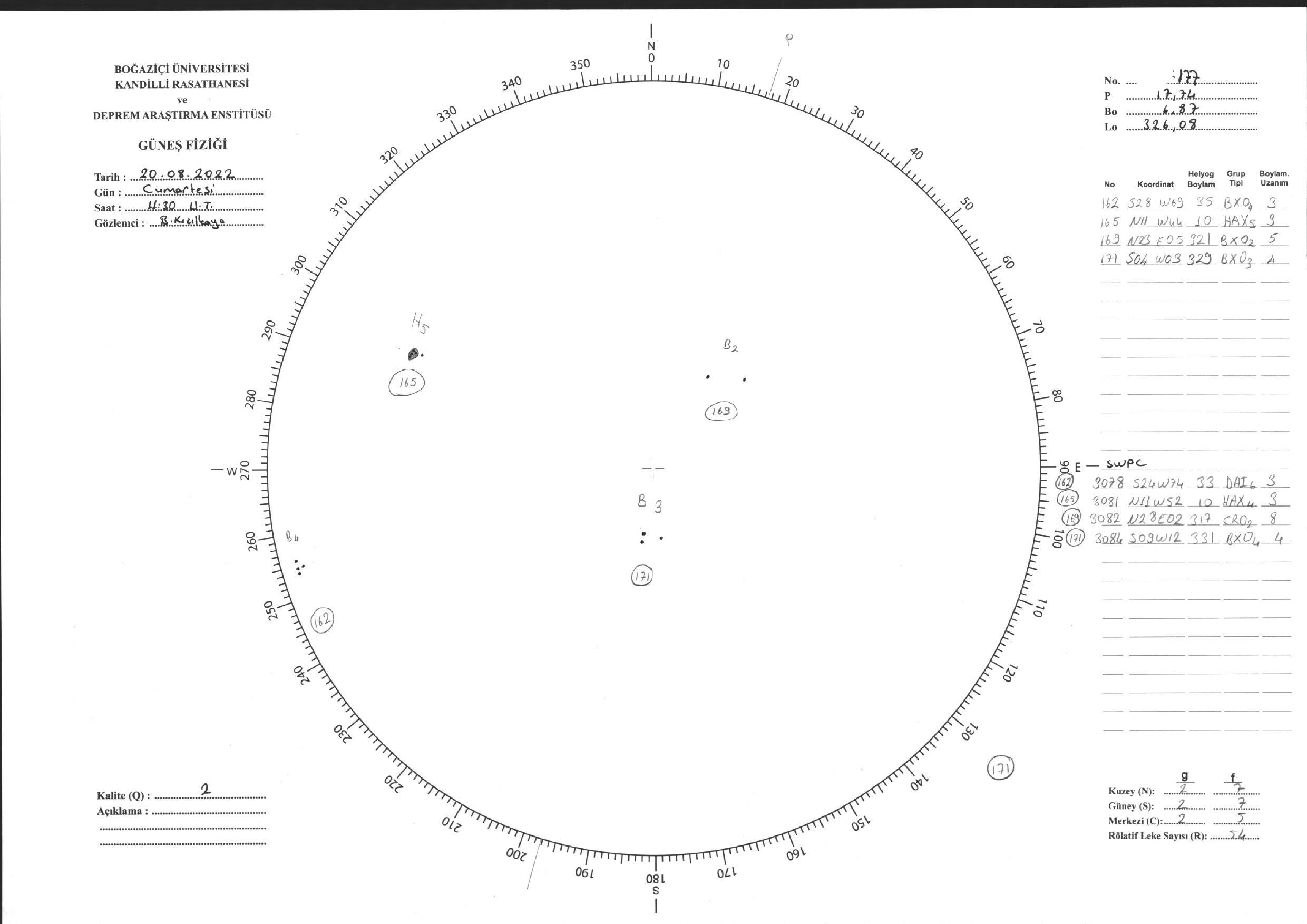 Güneş Lekesi Çizimi - 20.08.2022
