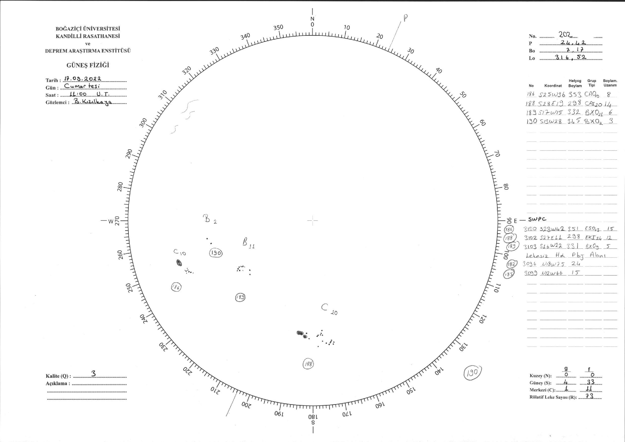 Güneş Lekesi Çizimi - 17.09.2022