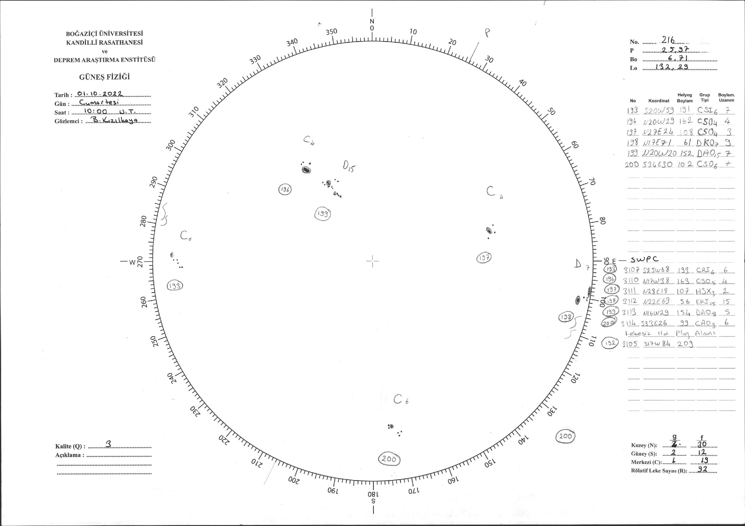 Güneş Lekesi Çizimi - 01.10.2022
