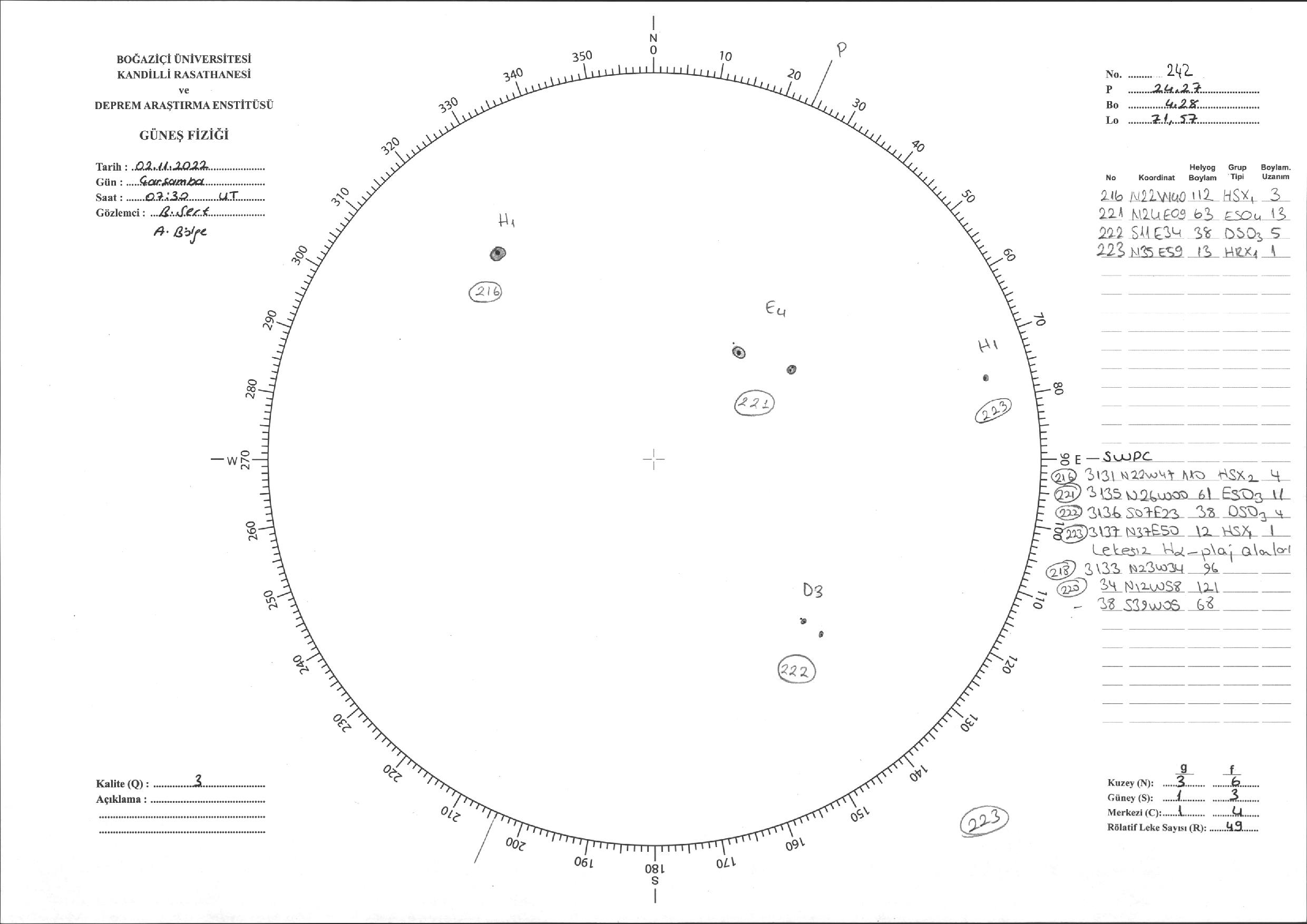 Güneş Lekesi Çizimi - 02.11.2022
