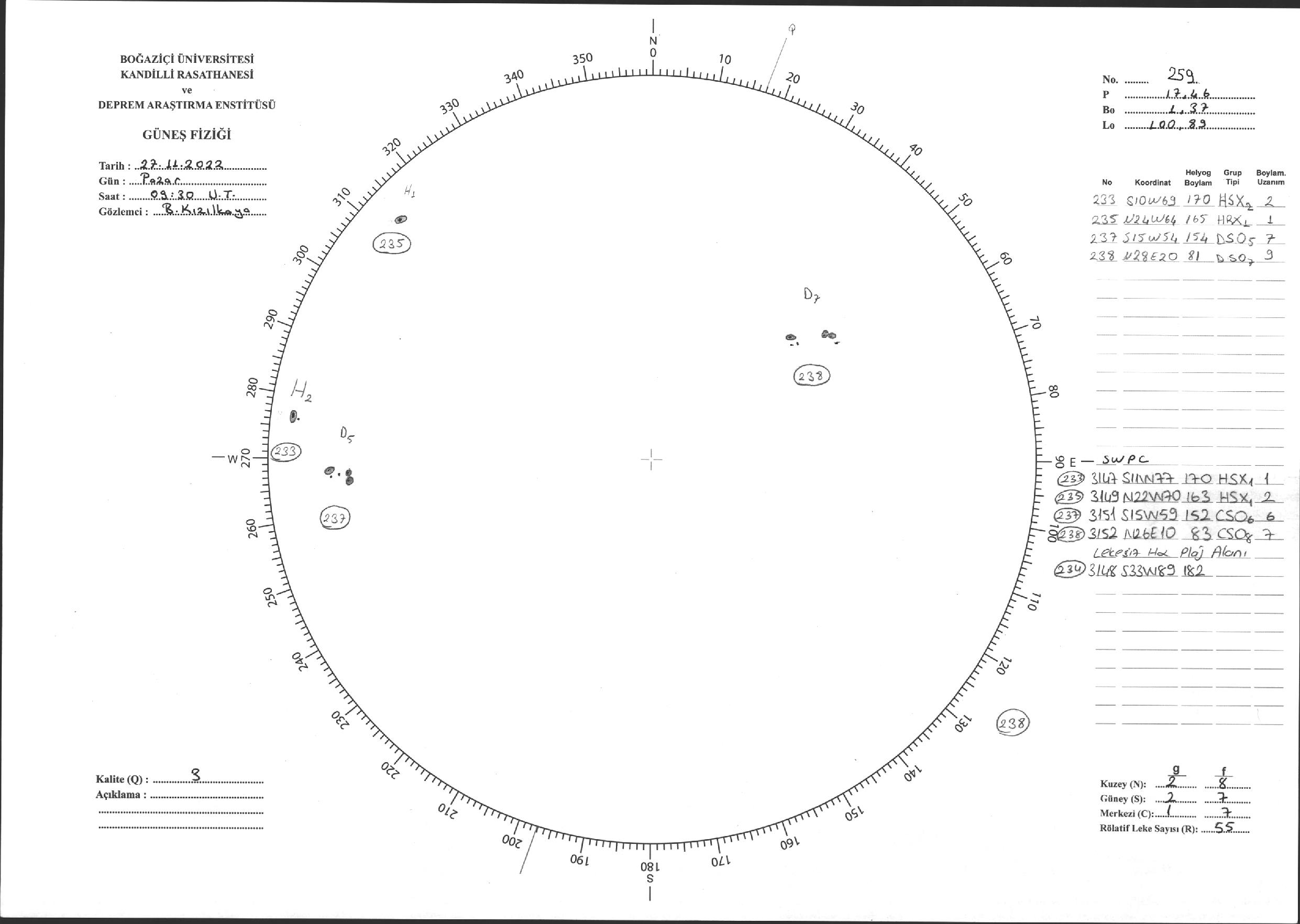 Güneş Lekesi Çizimi - 27.11.2022