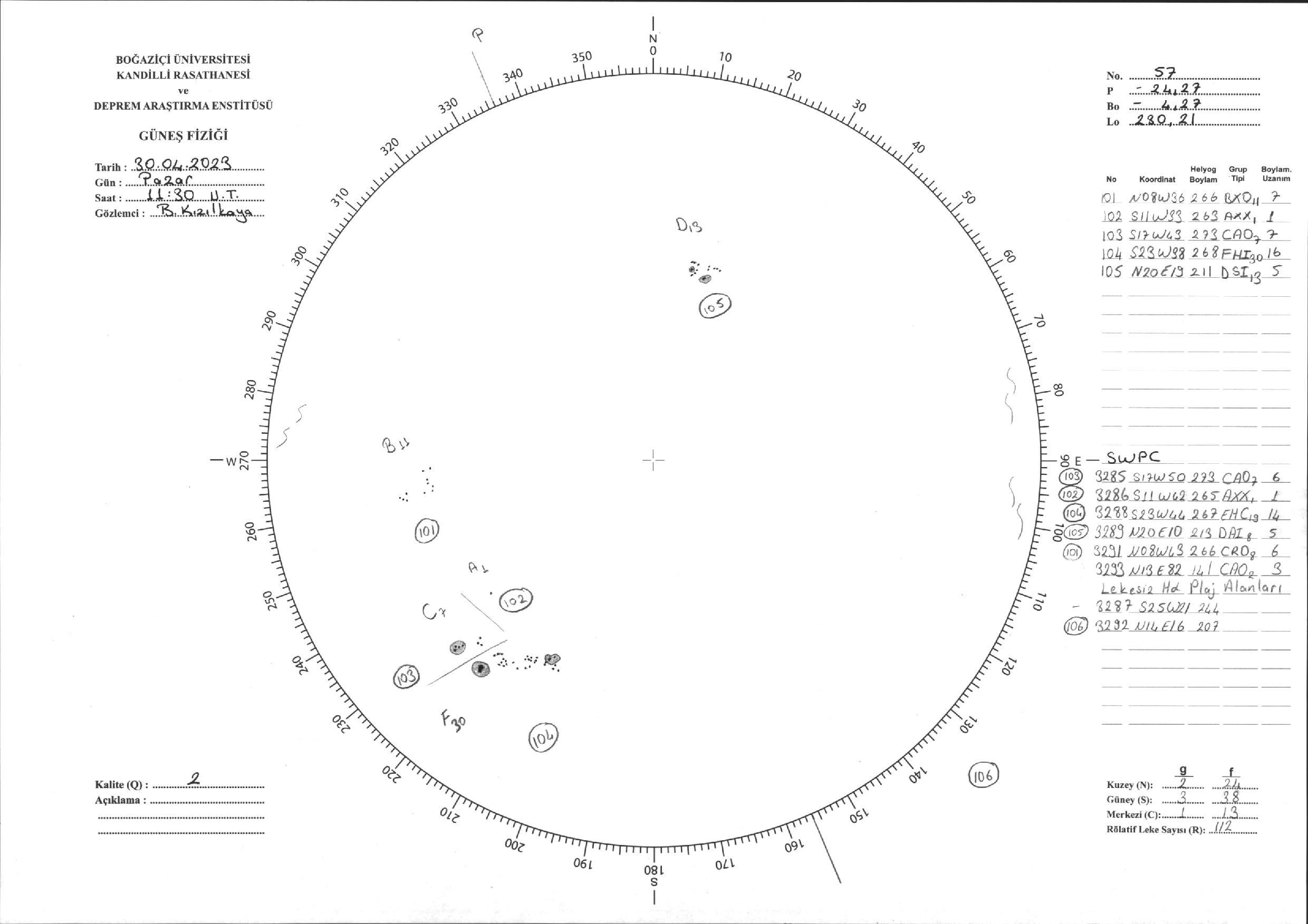 Güneş Lekesi Çizimi - 30.04.2023