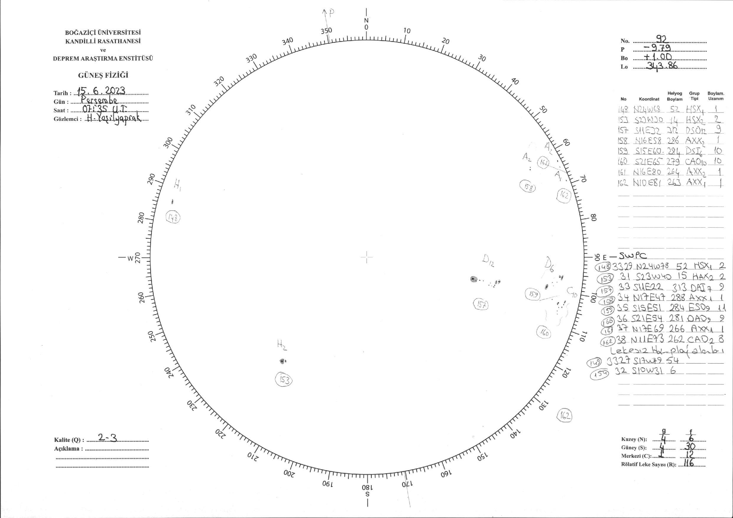 Güneş Lekesi Çizimi - 15.06.2023