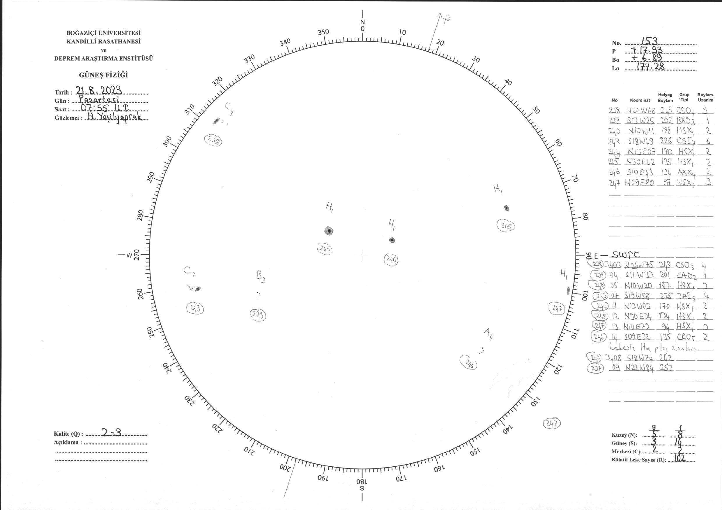 Güneş Lekesi Çizimi - 21.08.2023