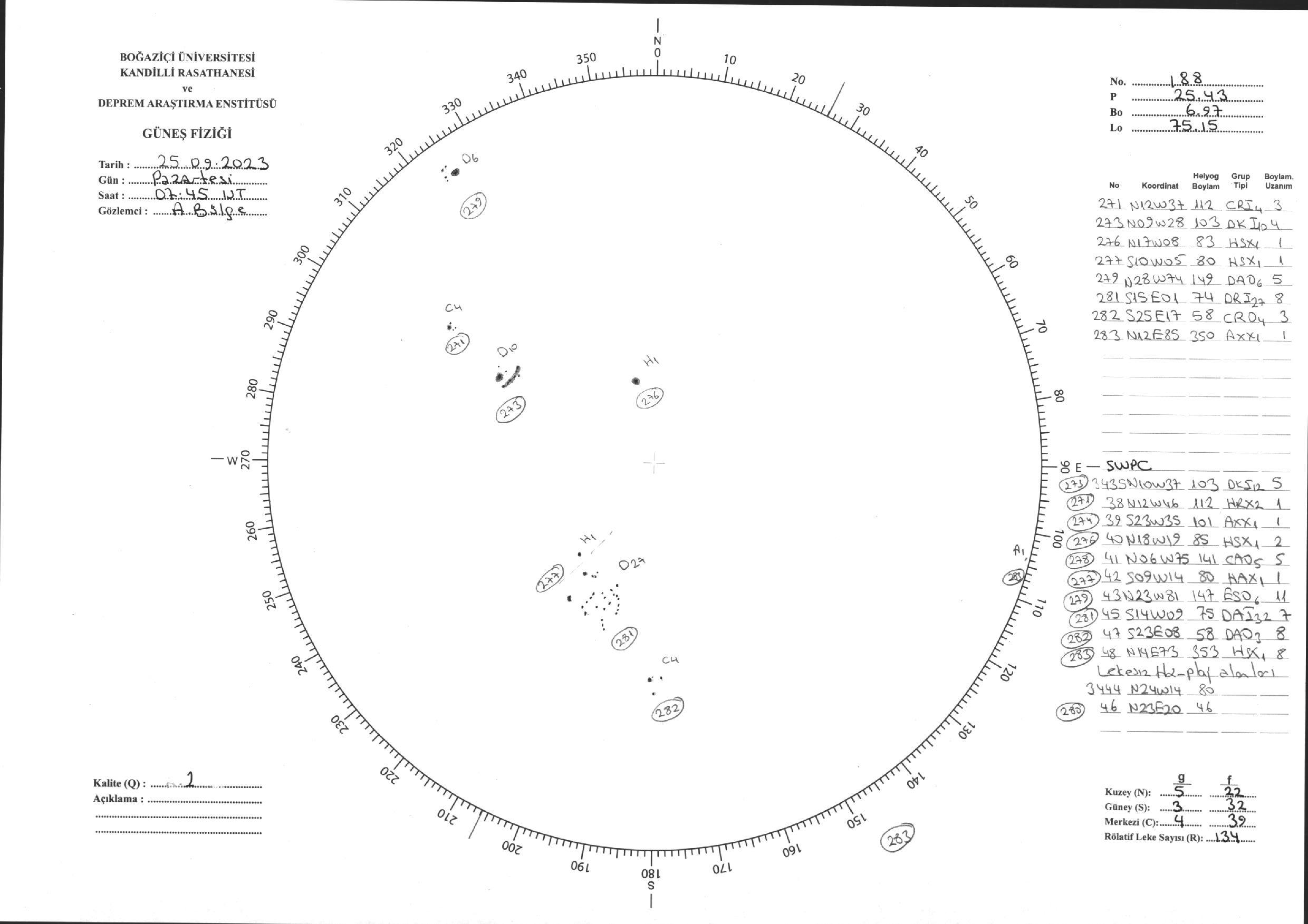 Güneş Lekesi Çizimi - 25.09.2023
