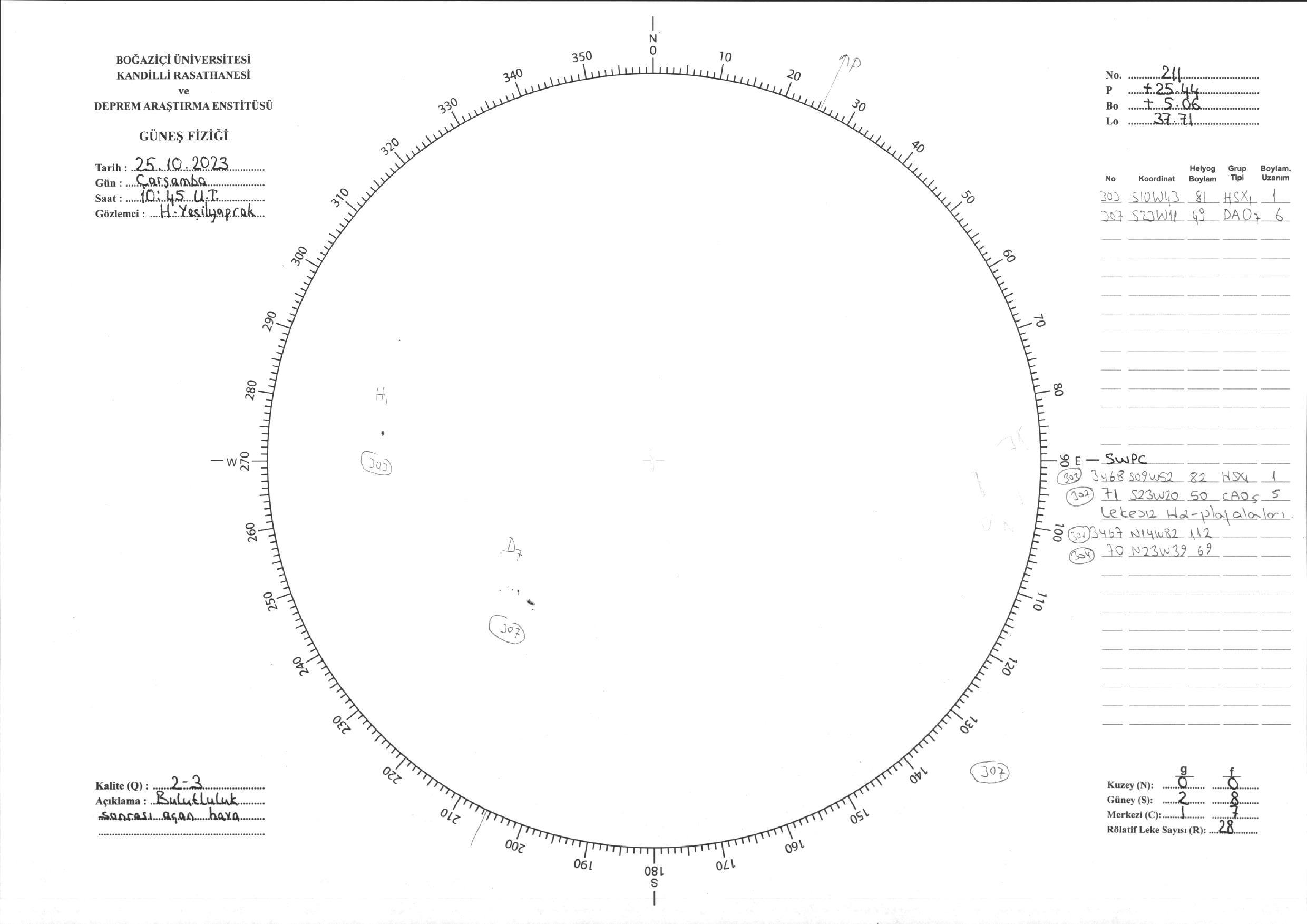 Güneş Lekesi Çizimi - 25.10.2023