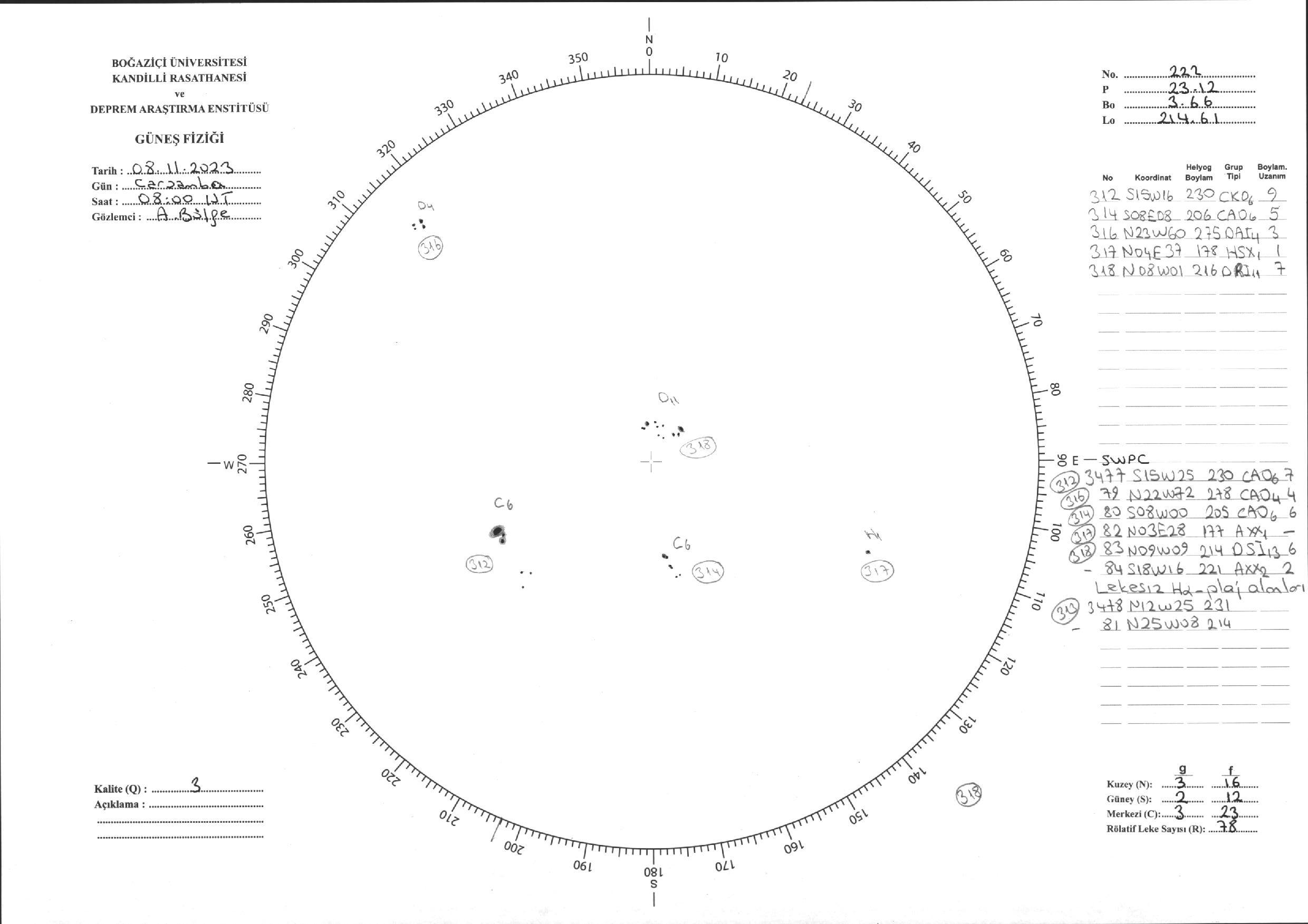 Güneş Lekesi Çizimi - 08.11.2023
