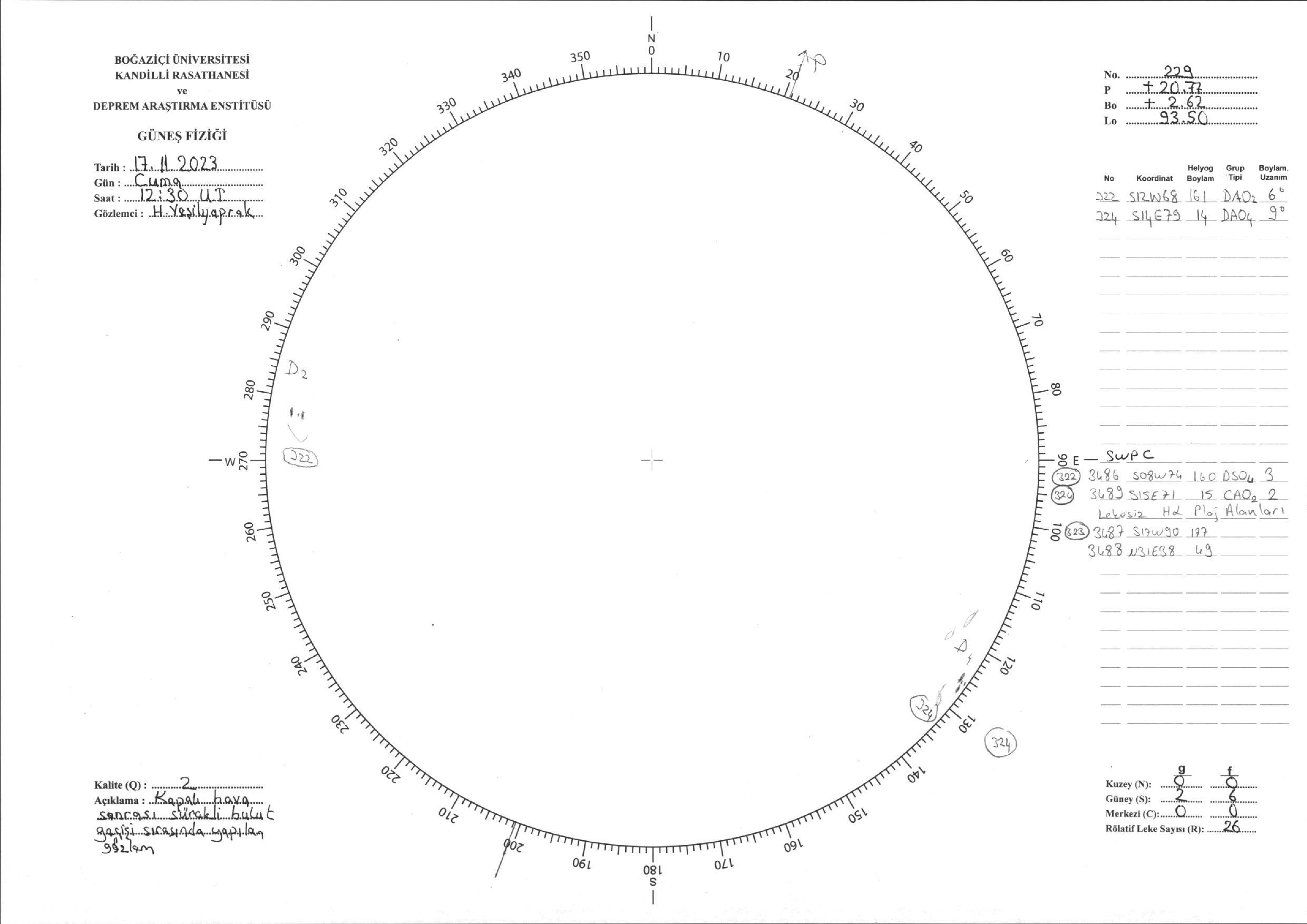 Güneş Lekesi Çizimi - 17.11.2023