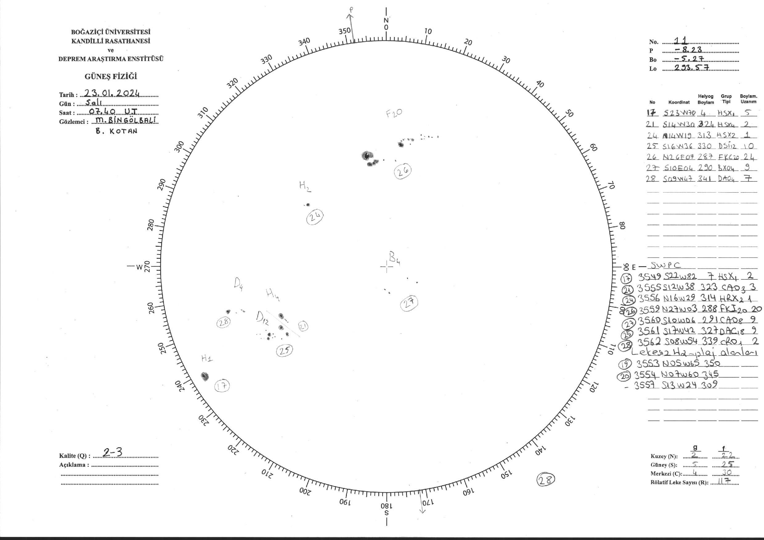 Güneş Lekesi Çizimi - 23.01.2024